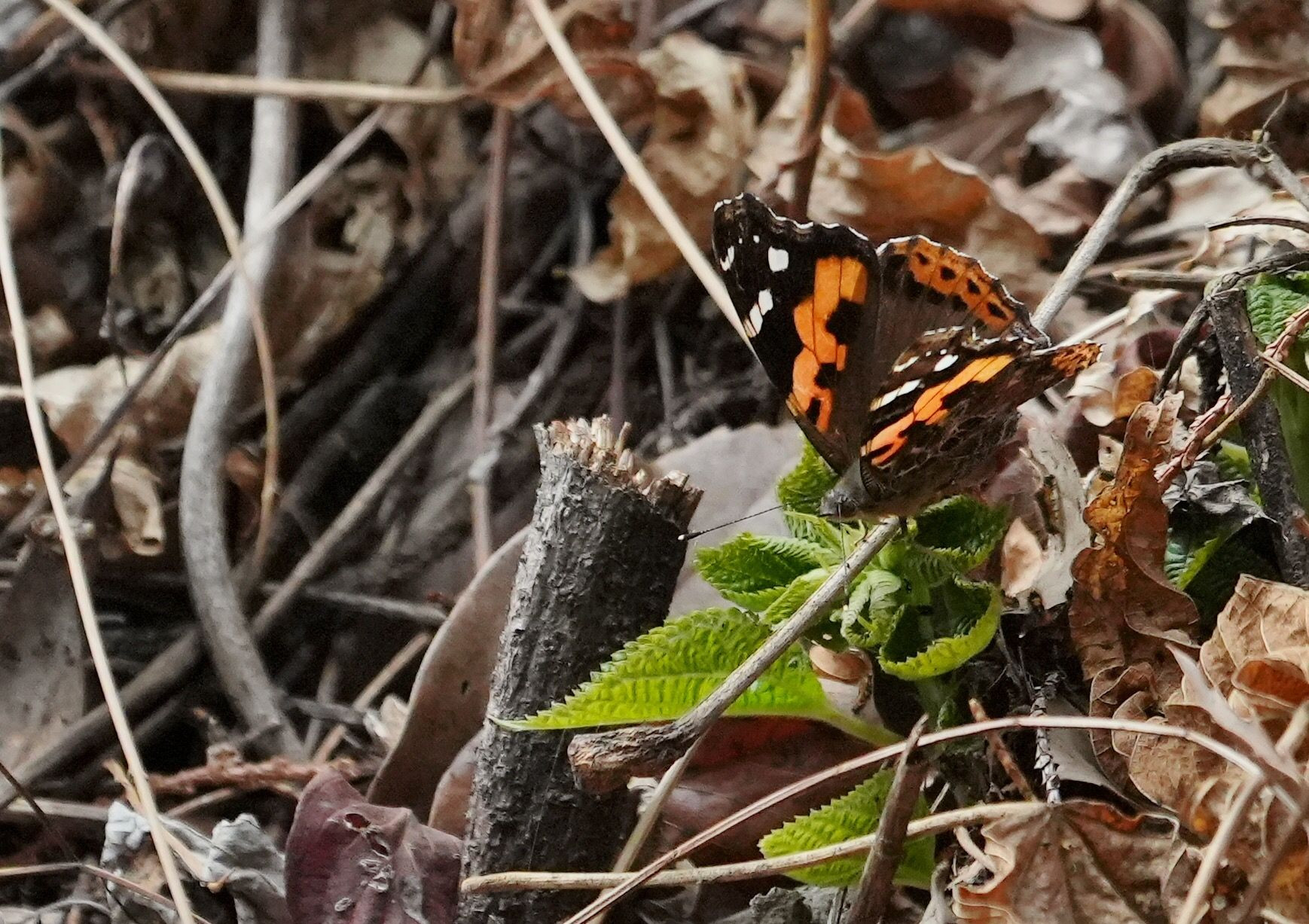 陽射しの野山でアカタテハに遭遇。