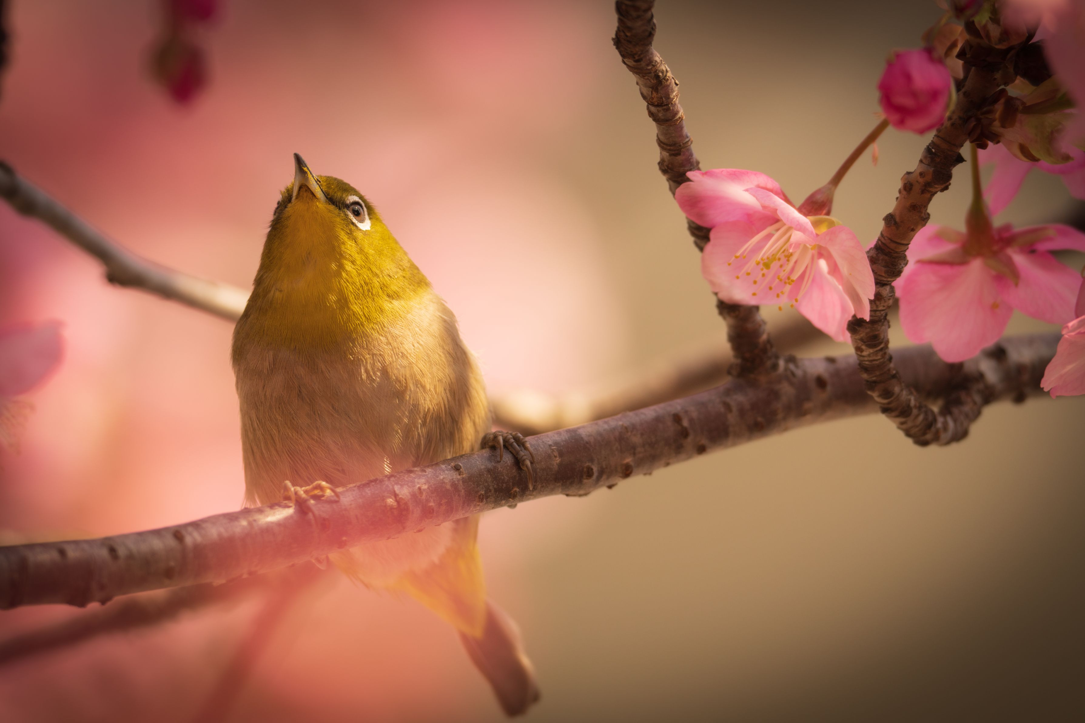 近所の河津桜と#メジロ#