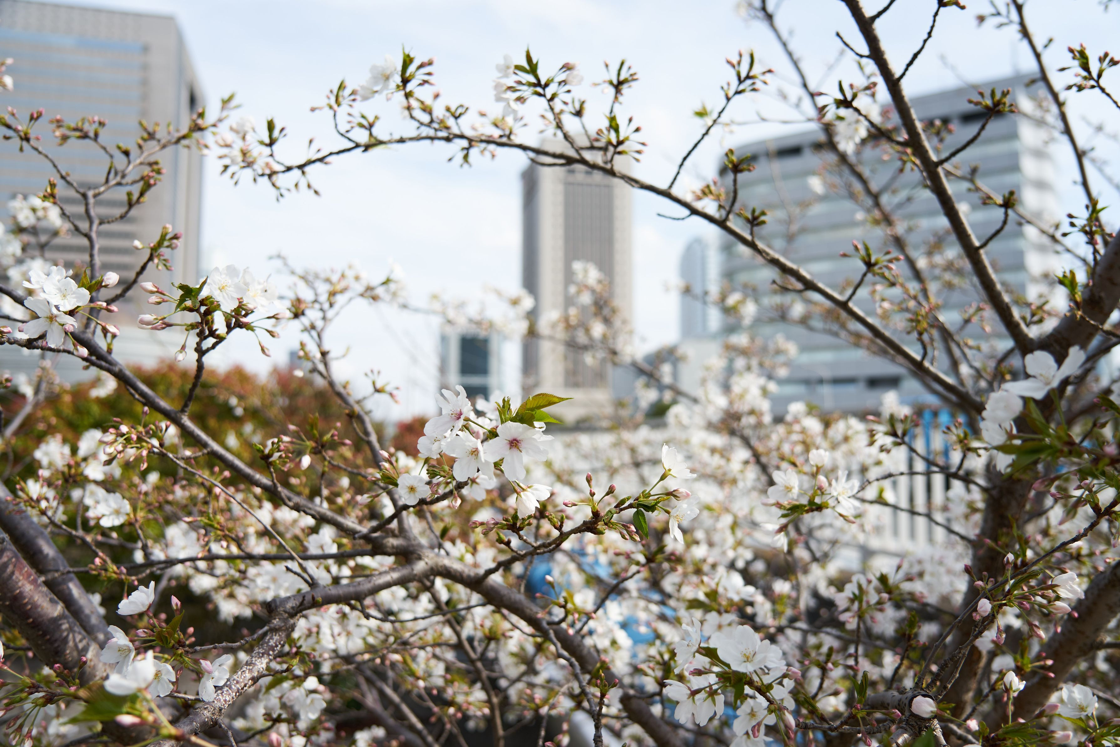 散歩コースから桜越しに海浜幕張の街並みを覗いてみました(#^.^#)
