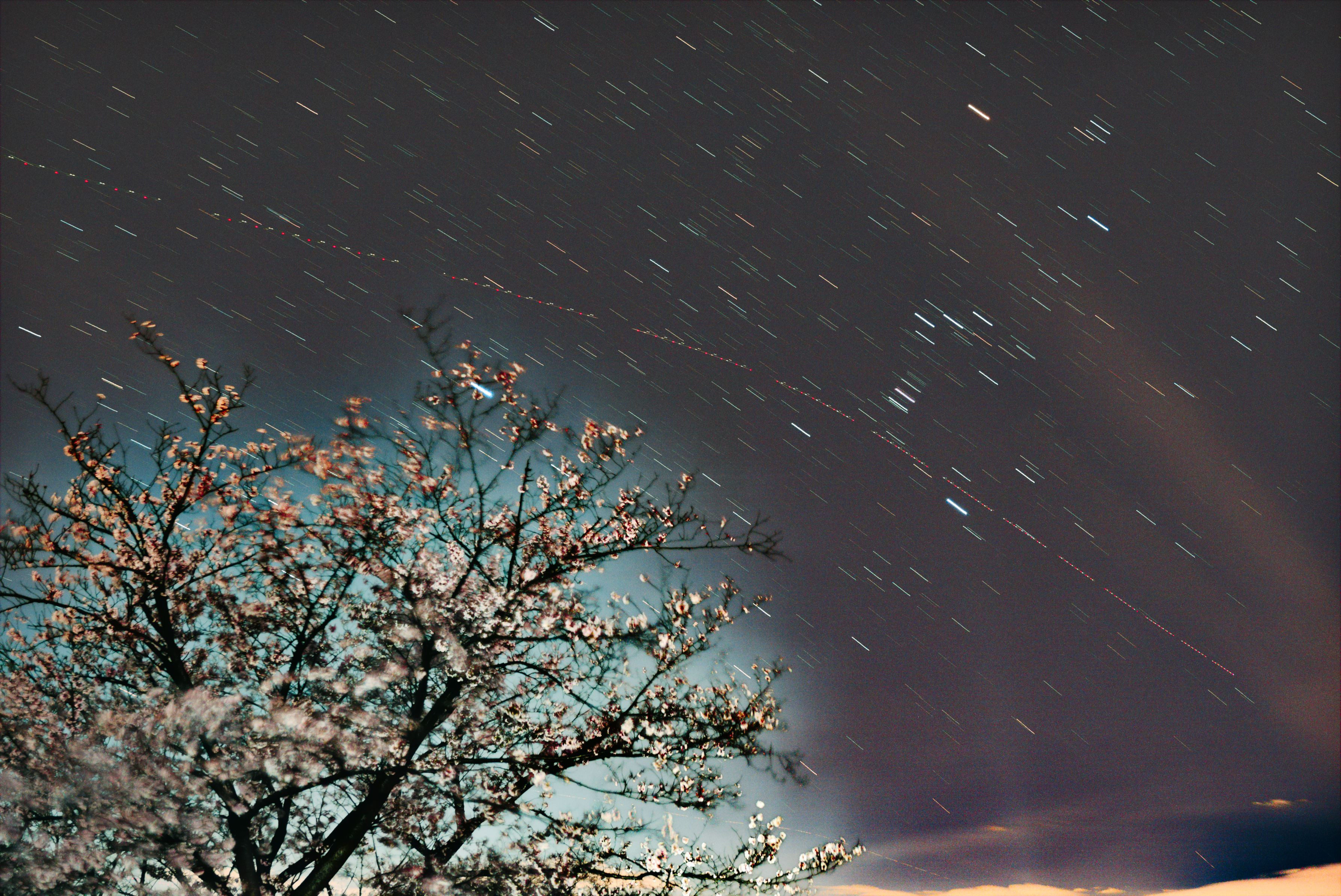 鶴見川の夜桜撮りに行ってきました。30分くらいですが、星が出てました。25枚比較明合成です。