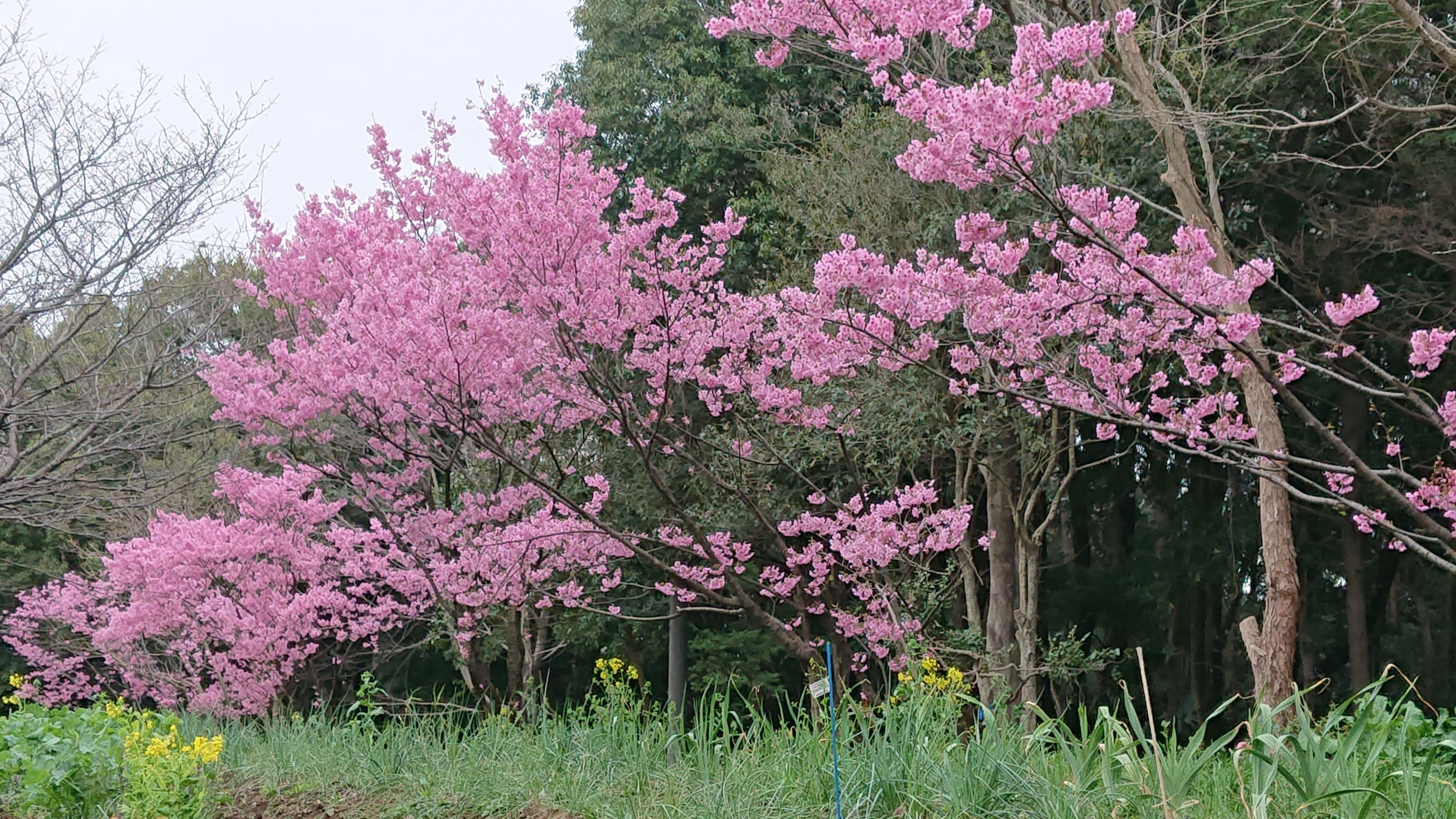 小学生が学年別に六本並べて植樹した陽光