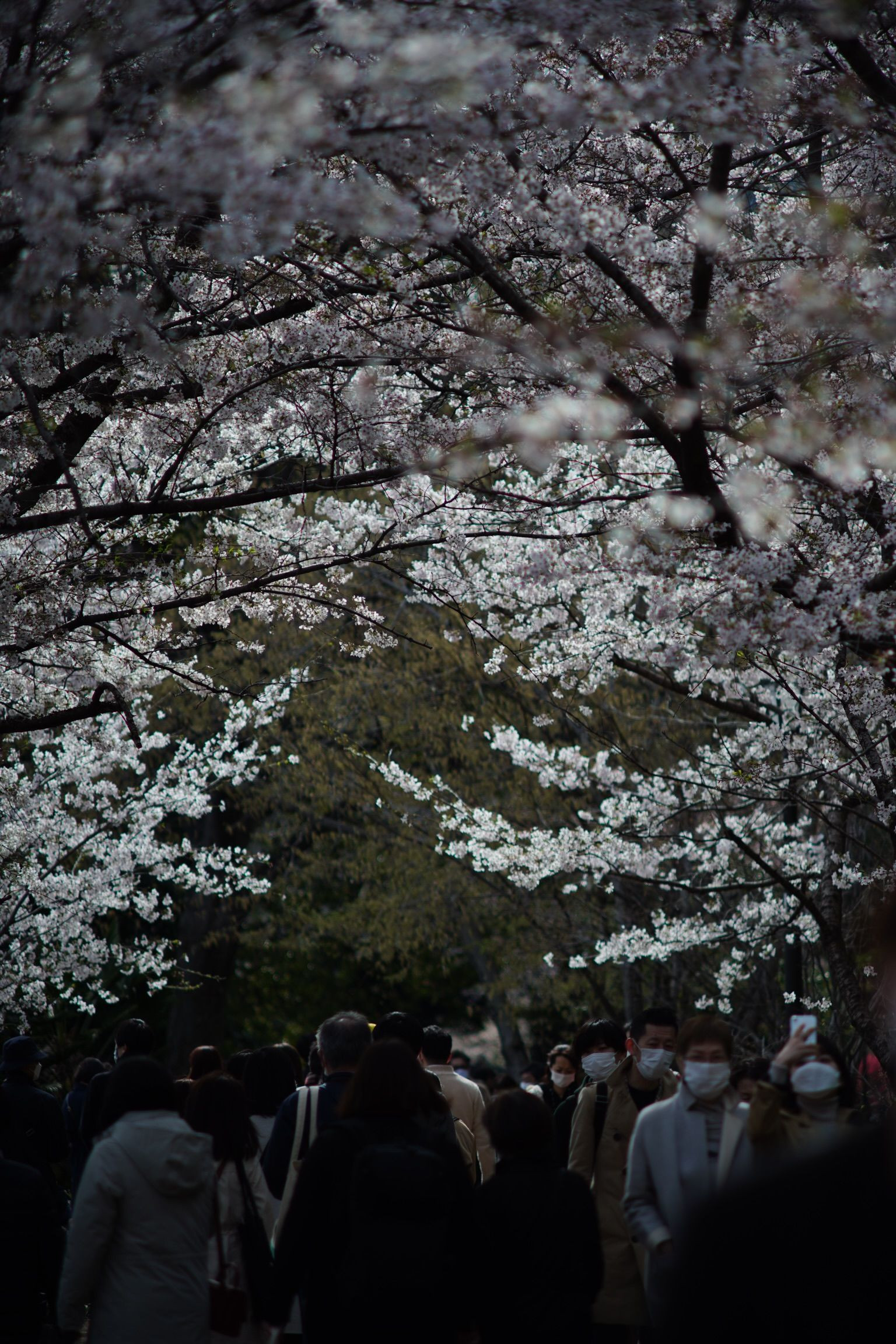 木陰で暗い場所。でも桜には光が、いや、桜から光?