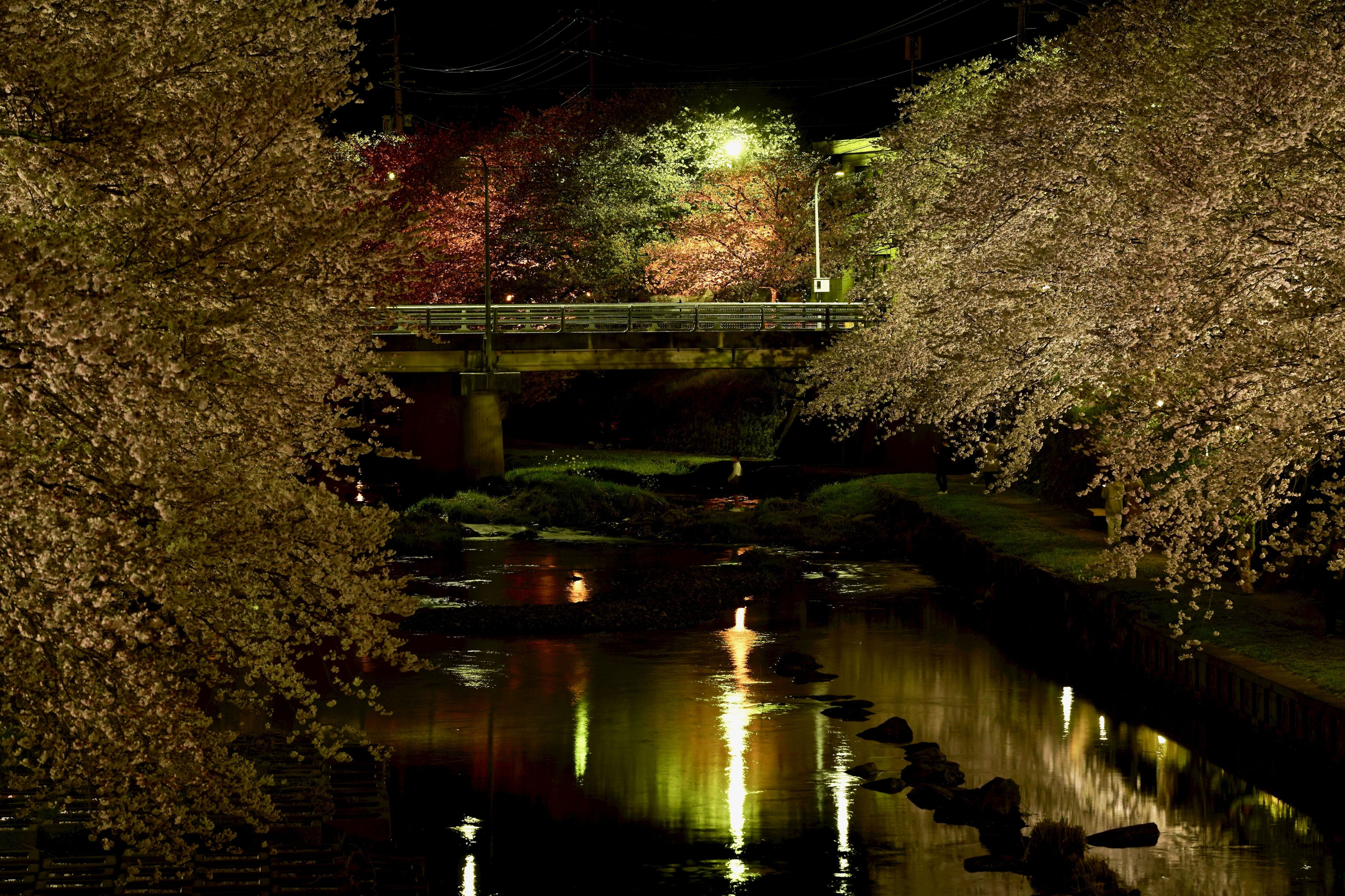夜桜をとってはみたものの、いまひとつ物足りない。