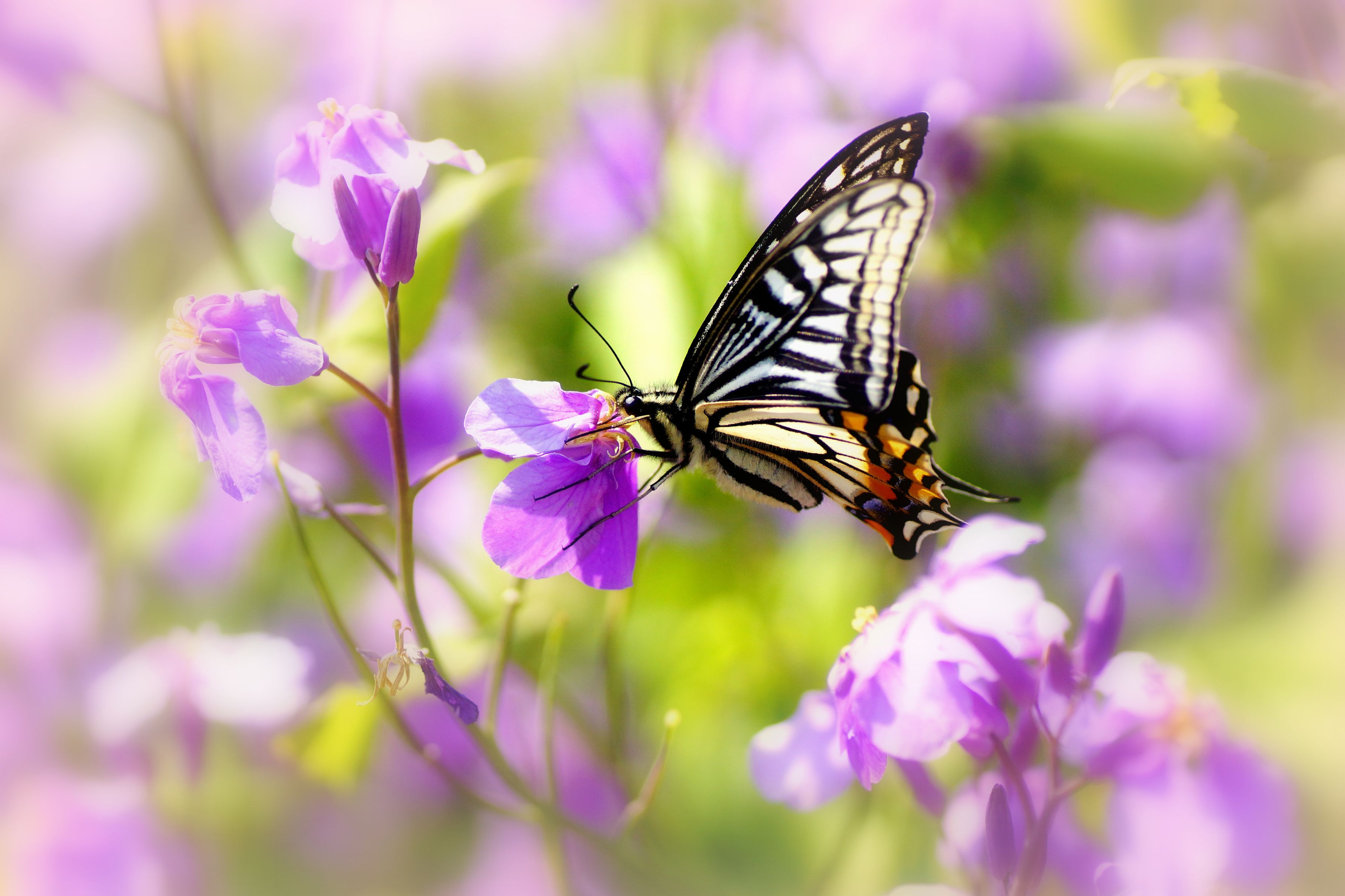 ムラサキハナナのお花畑にやって来たのはナミアゲハです。 日毎に賑やかになっていきますね。