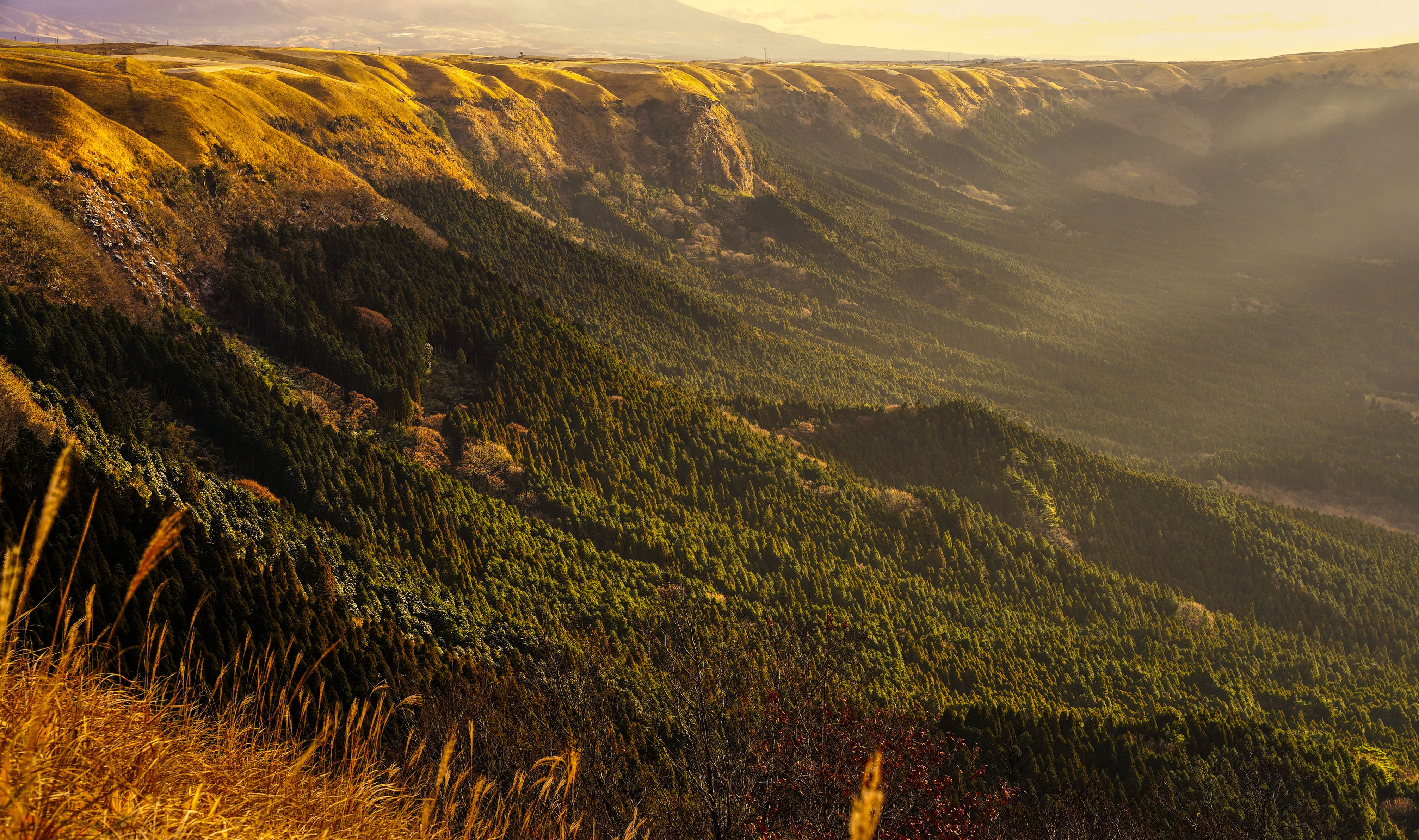 阿蘇の草原の金色の季節も終わりに近づきました。 あちこちで緑が芽吹き始めています。
