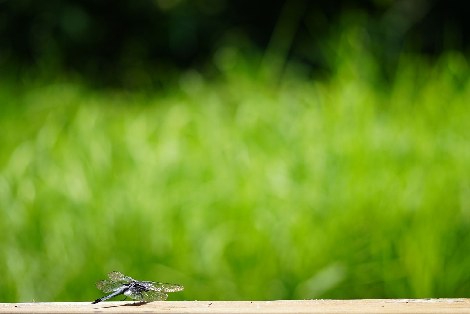 ベンチで休憩していると、飛んで来たトンボも一休み。一緒に休憩をとりました。