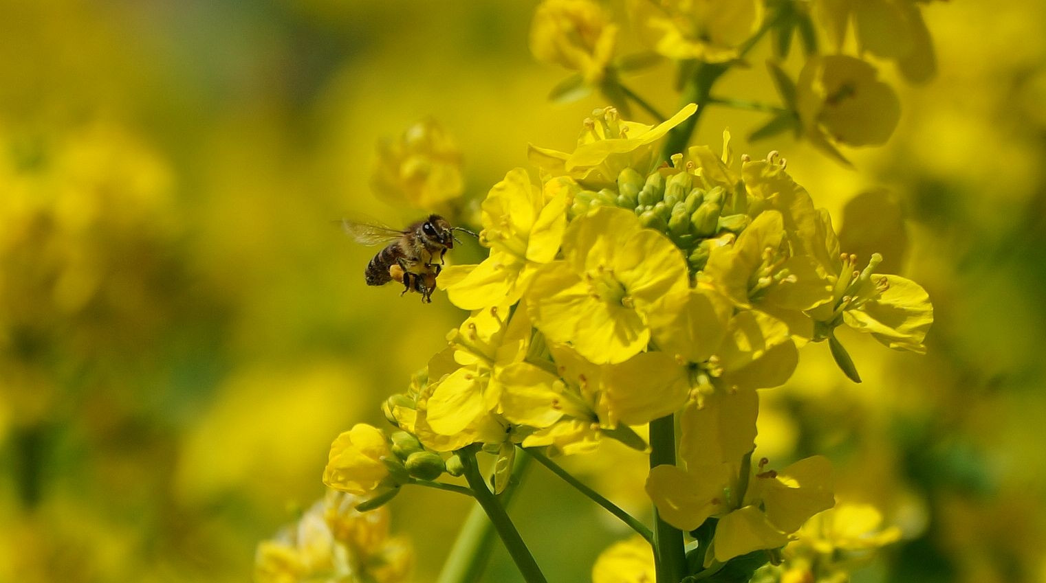 菜の花畑のミツバチです