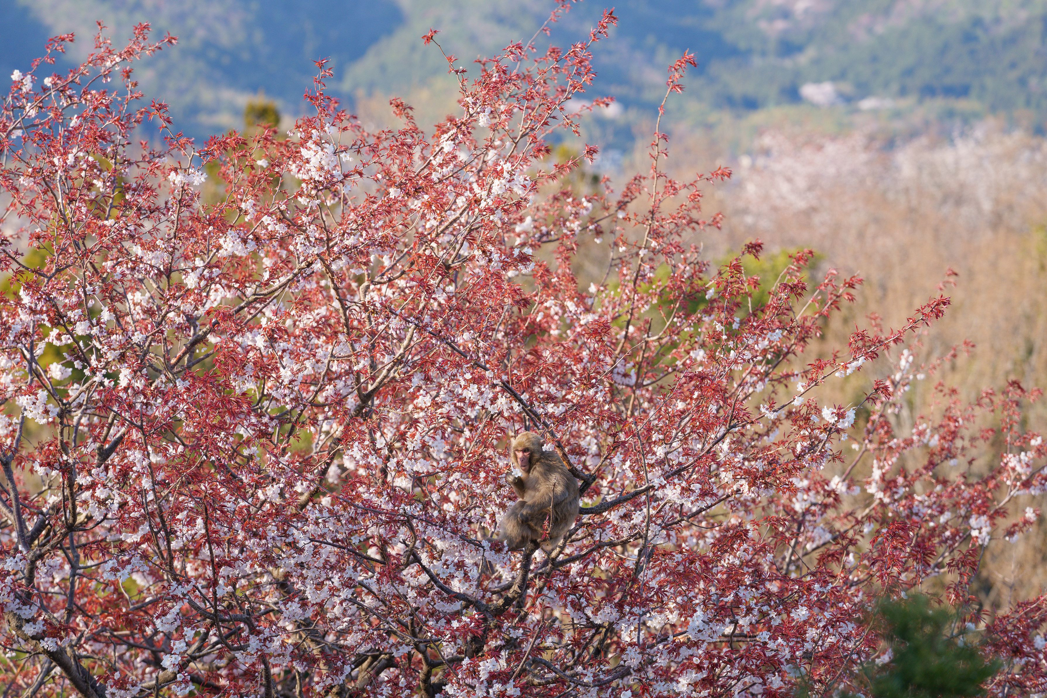 山桜とニホンザル