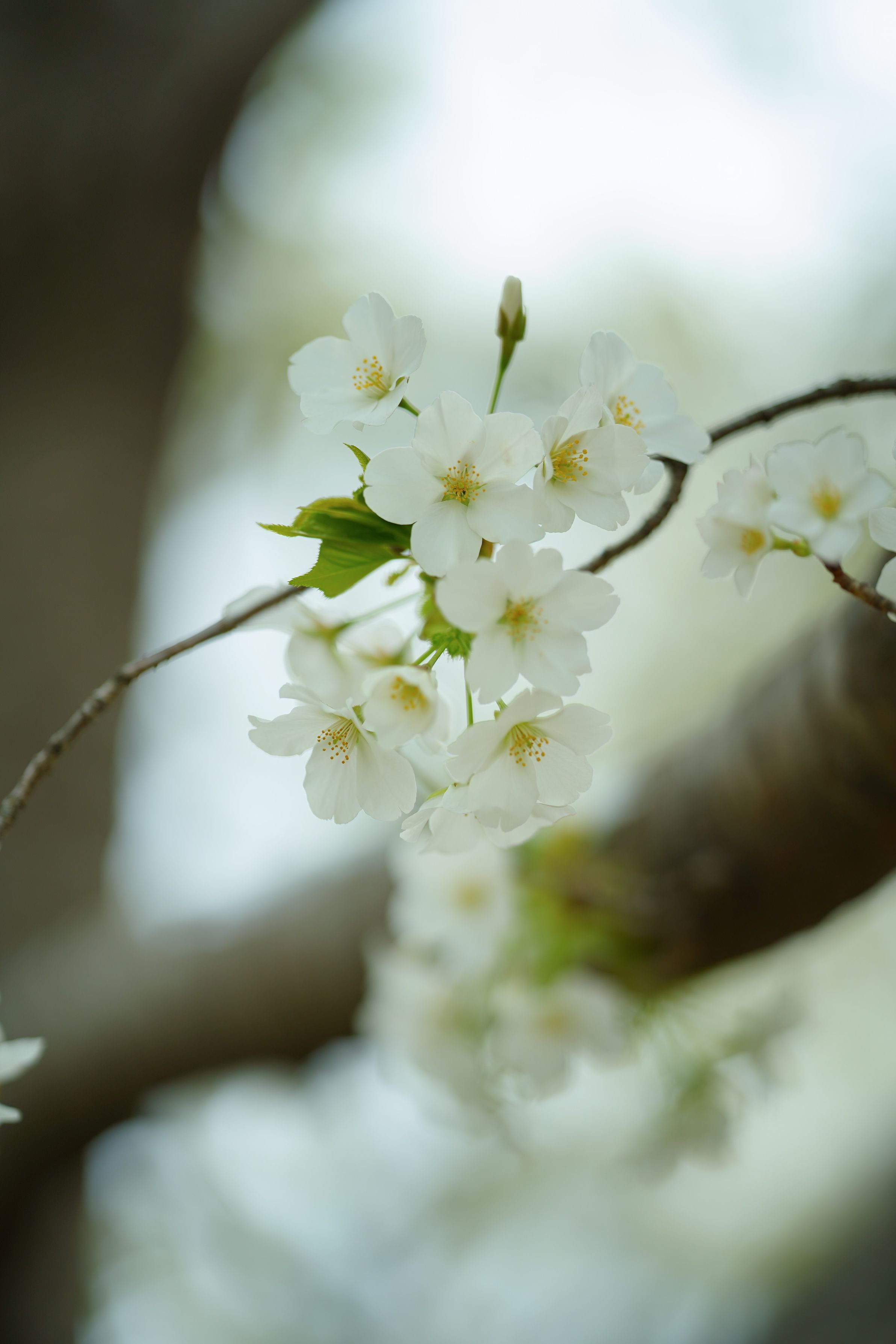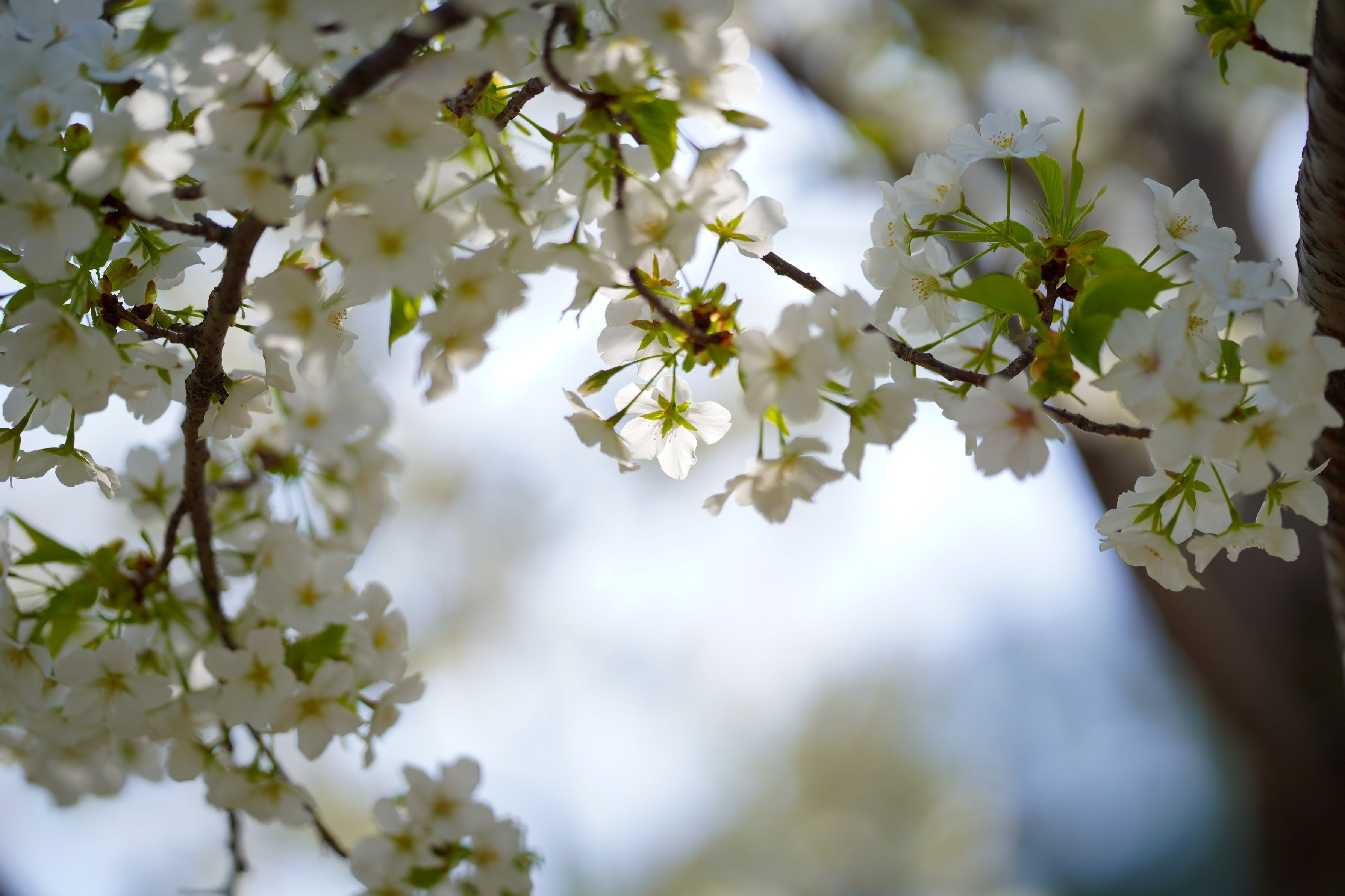 緑のガクが爽やかな、白い桜が咲いてました。 暑くて眩しかったので花の下に入って日陰から見たら、内面の顔を見せてくれたような気がしてホッとしました。 と同時に、枝の面白い動きに魅了されてしまいました。花の美しさも枝あってこそ、かな(^.^)