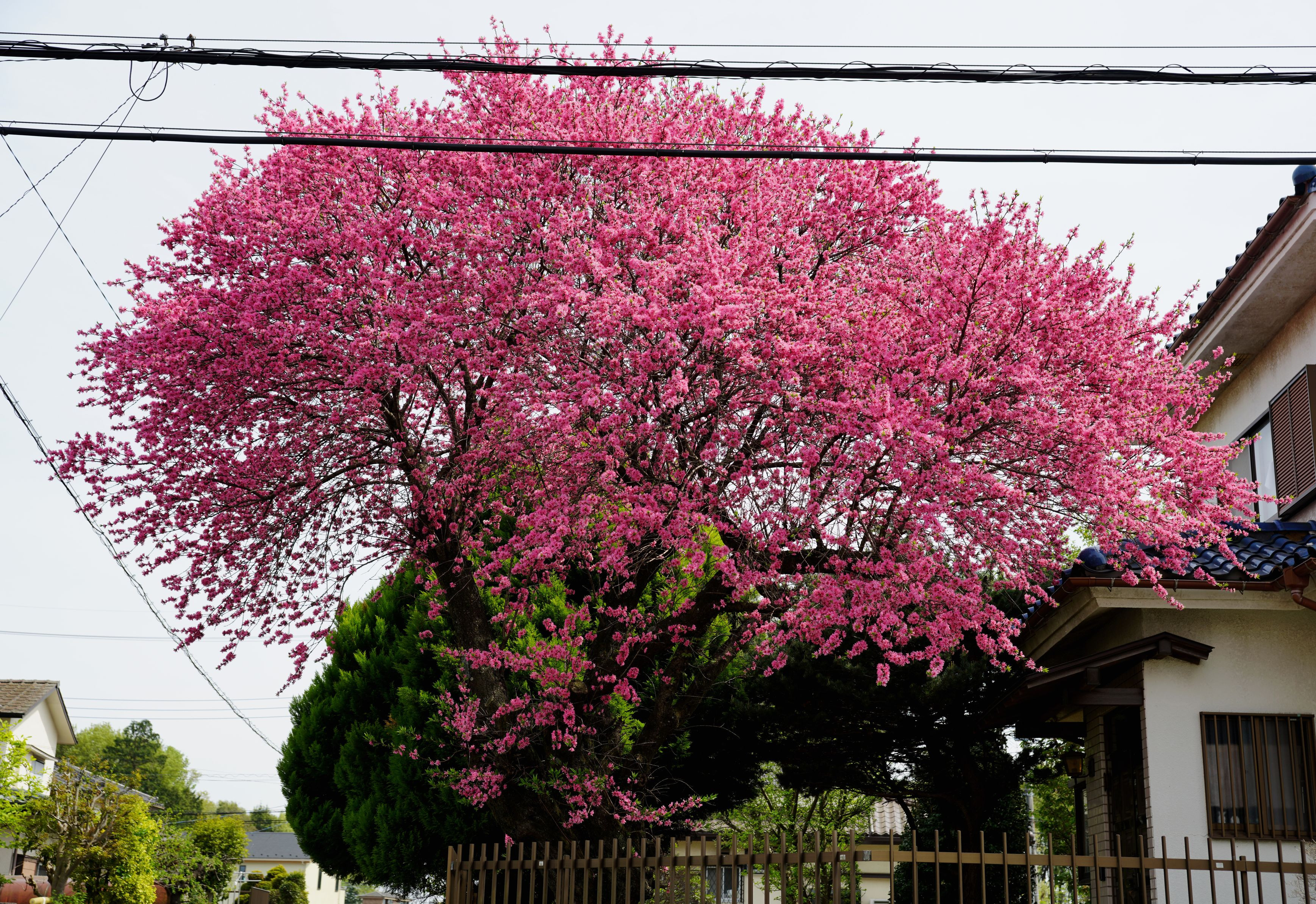 当家から車で多摩方面に向かう途中の民家に植えられた紅梅です。(所沢市内) 電線が映り込むので撮影しても投稿はためらっていたのですが、今年は花色があまりにも鮮やかなので、アップしました。 二年前に強い選定が施されているのを確認していますが、その効果が今年、文字通り花開いたのだと思います。