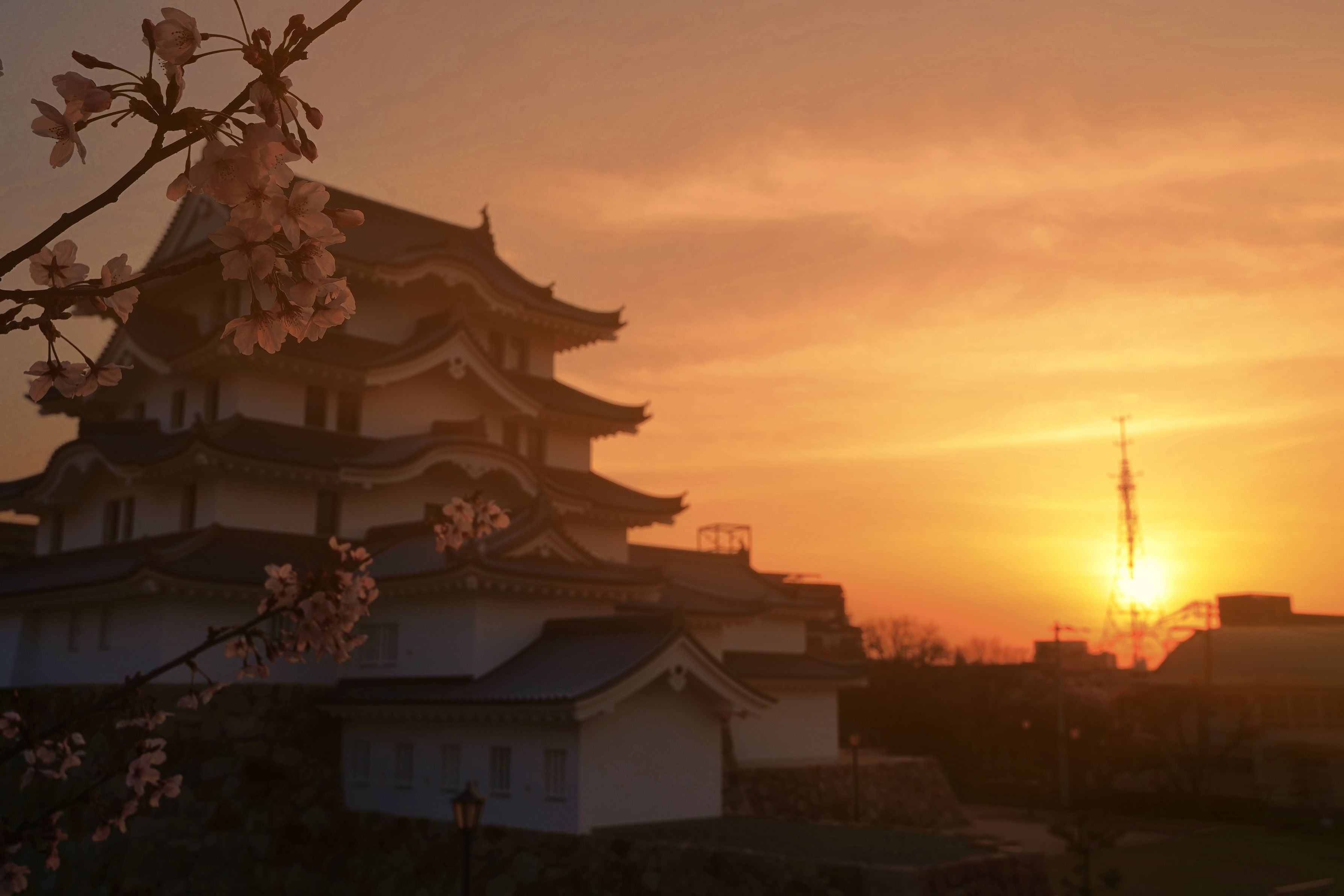 春の朝日に照らされた尼崎城の天守閣です。誰もいない城址公園の澄んだ空気などが再現、お伝えできれば嬉しく思います。