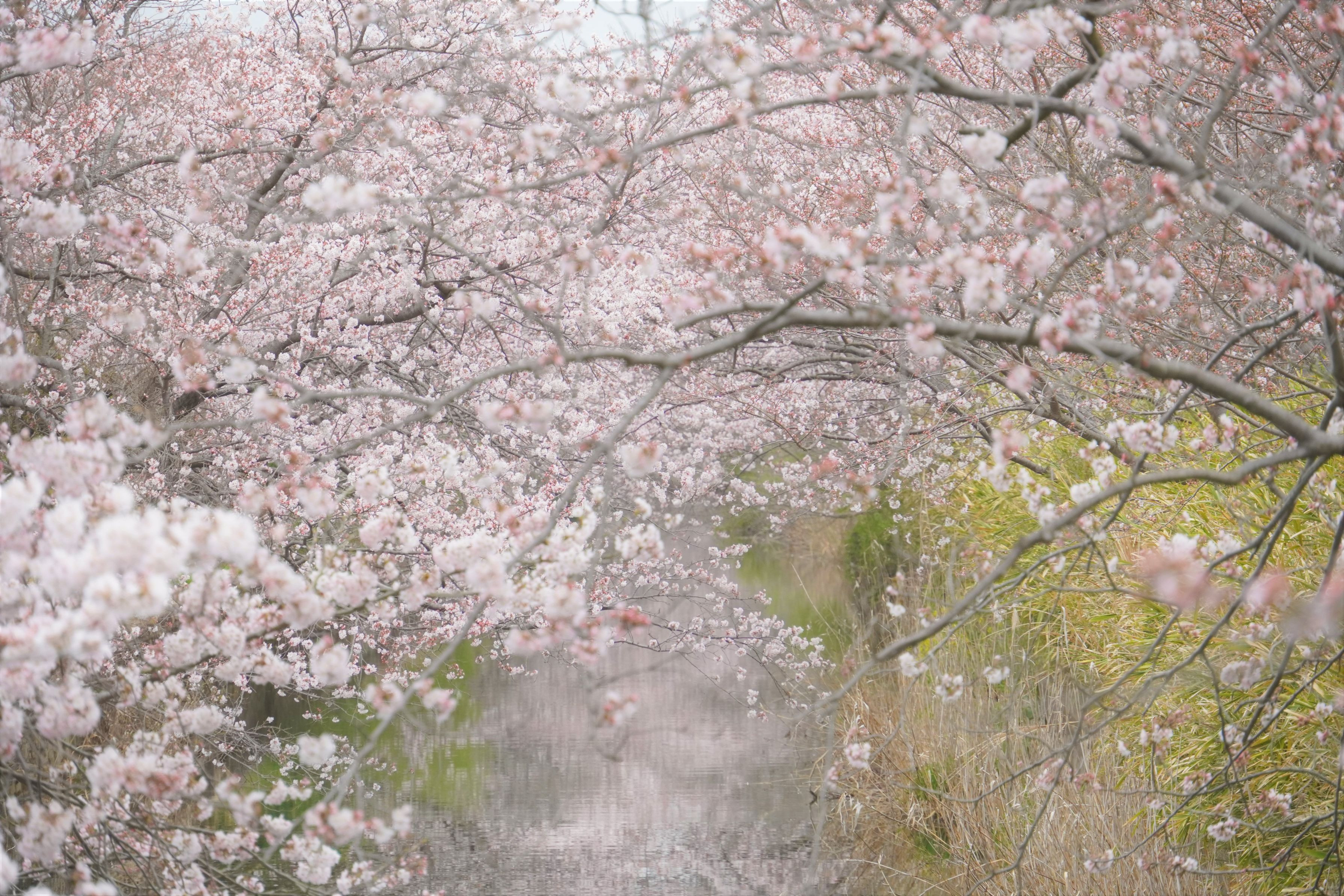 まだ七分咲のときの桜のトンネル