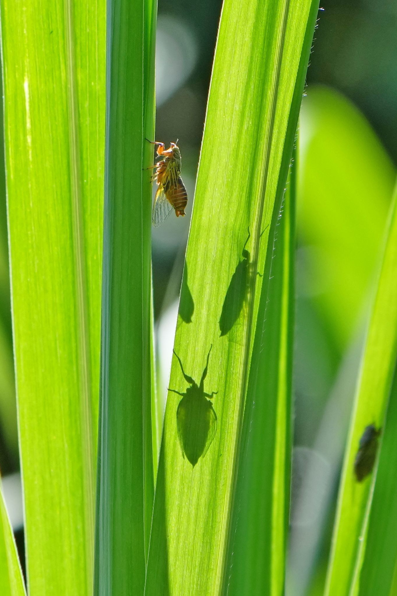 国内最小のセミ、イワサキクサゼミがススキの葉にとまり、大合唱していました。