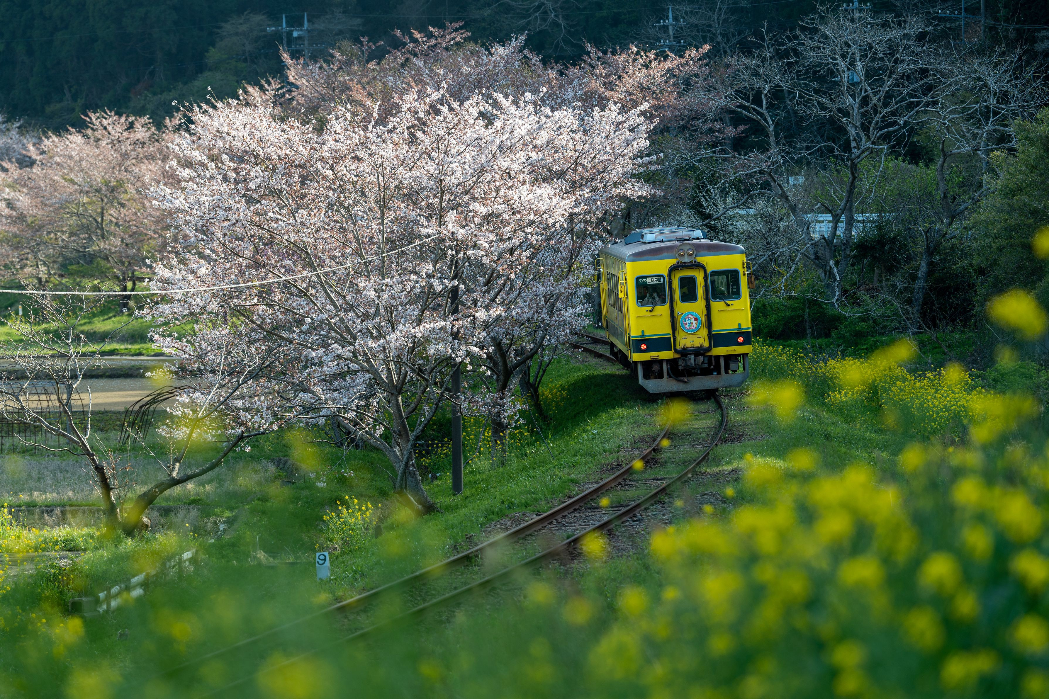 このポイントでは写真ツアーと思われる人達がたくさん撮っていました。 もう少し列車が来る時間が遅いと左の桜は日陰になってしまう所でした。