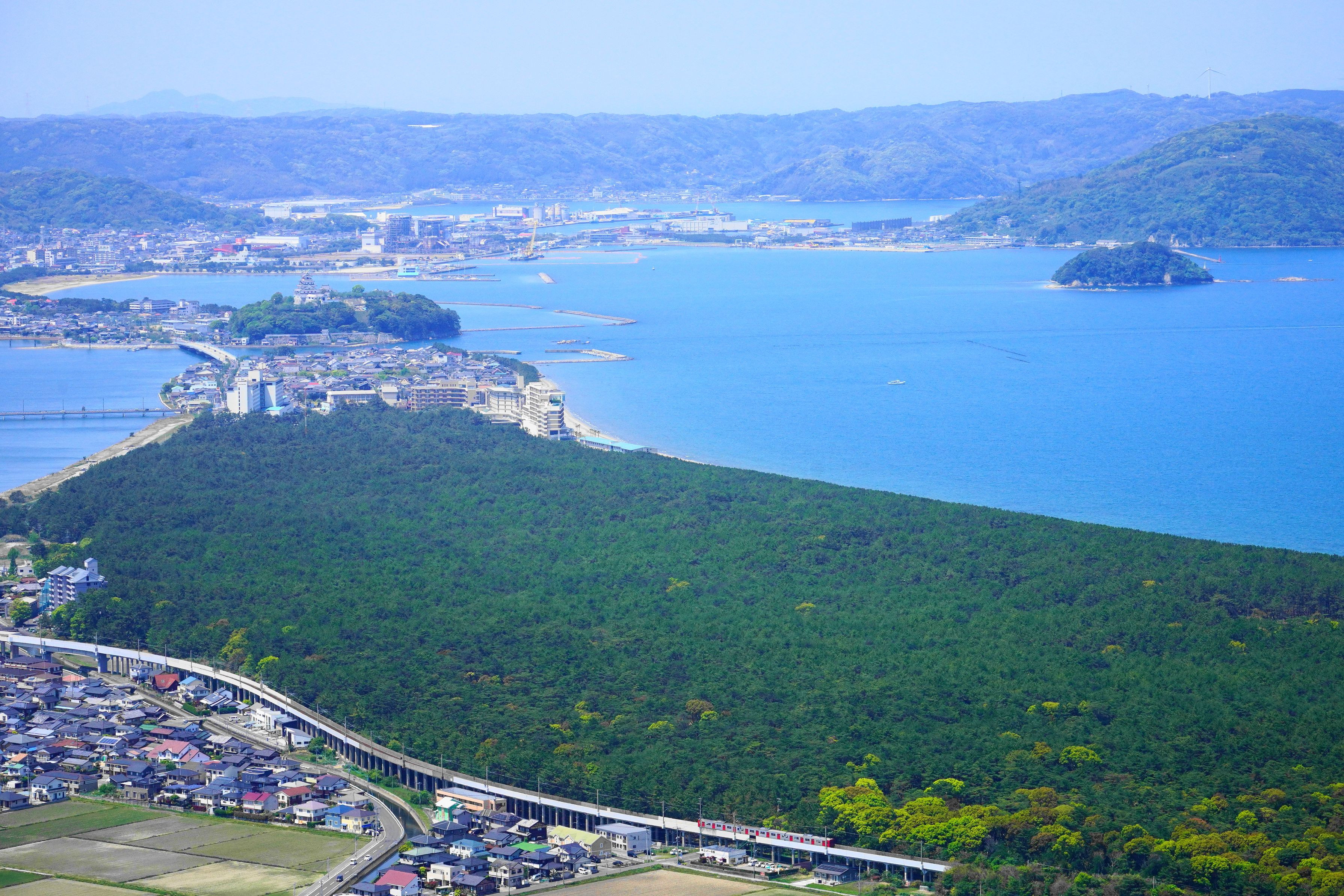 唐津市内の名所旧跡をご案内申し上げます。松浦佐用姫伝説の残る「鏡山」、展望台からは市内が一望できます。日本三大松原の一つ「虹の松原」も、眼下に広がります。そして、名城「唐津城」、桜と藤の名所でもあります……………。