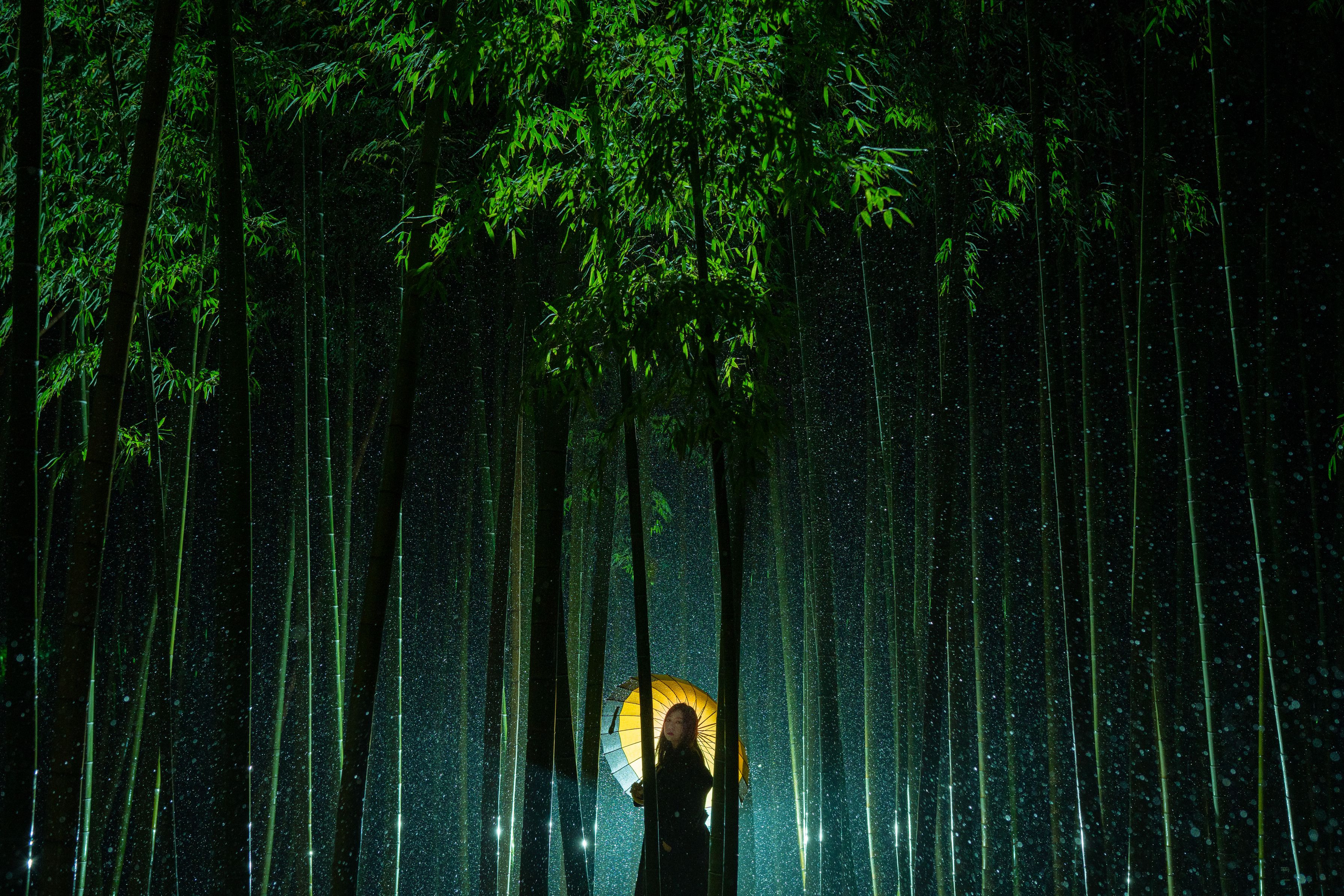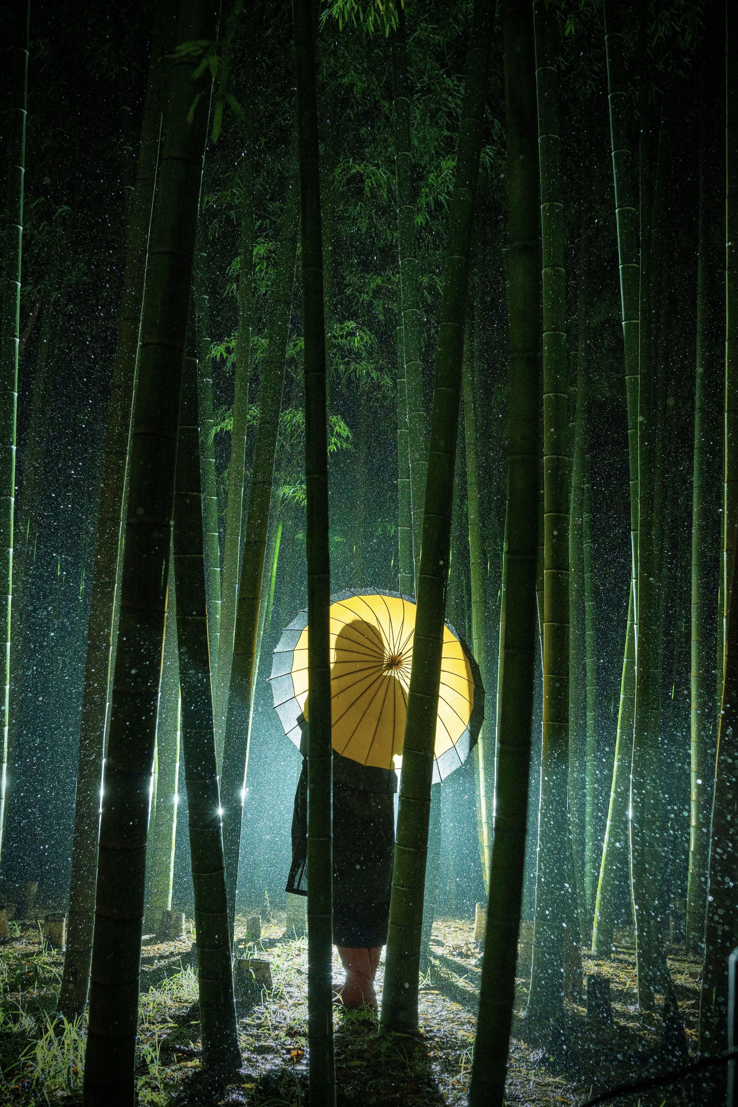 竹林に降る翠色の雨が綺麗で、もう少しここに居たい、、、