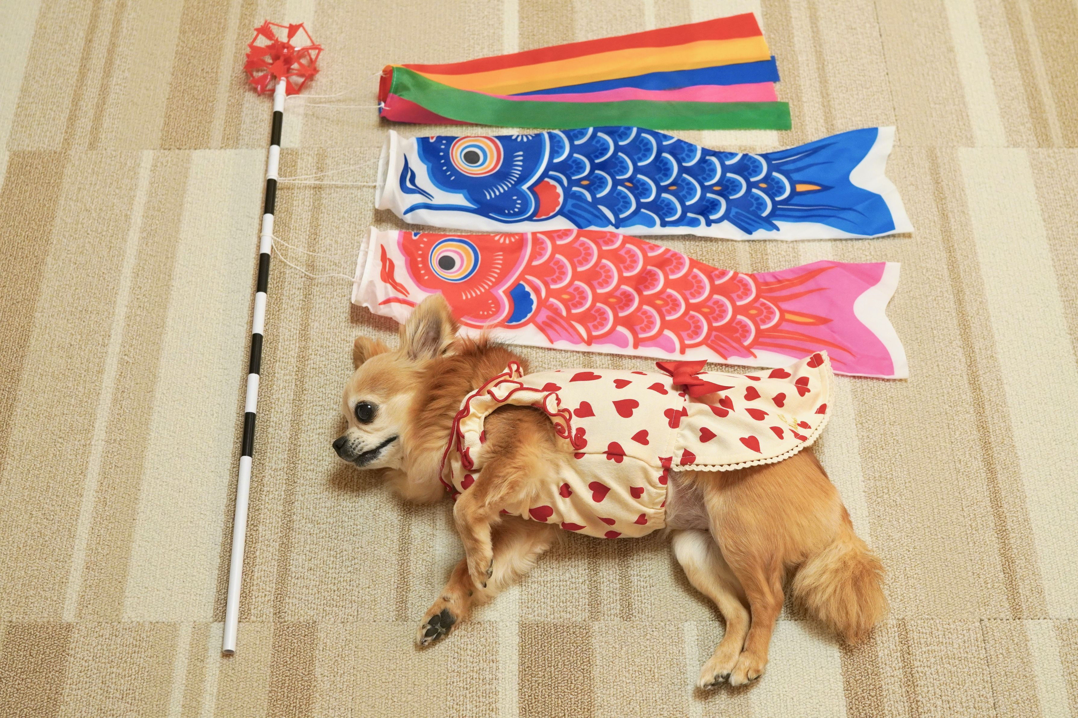 もうすぐこどもの日ですね ちょこも鯉のぼりに仲間入り。