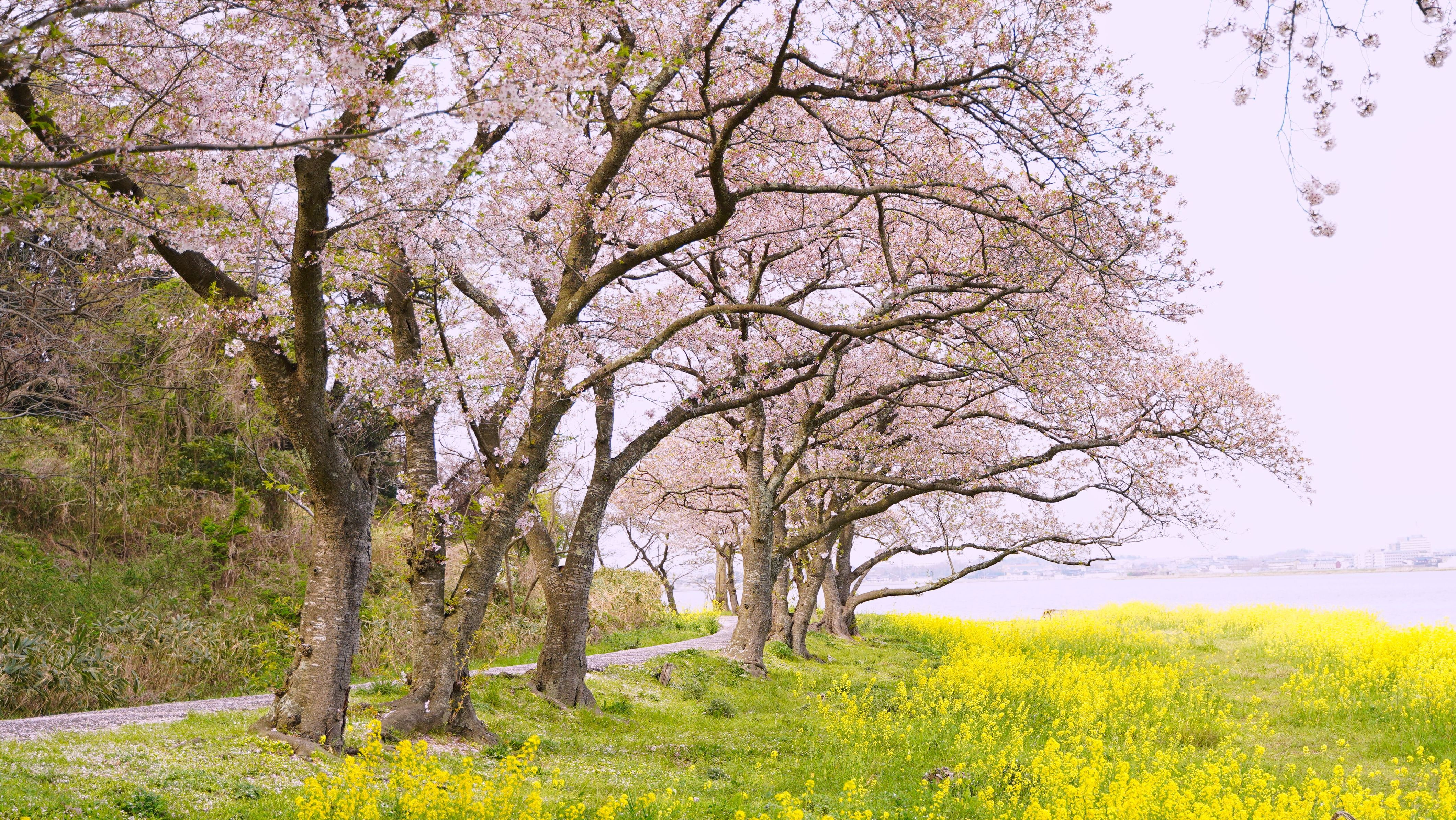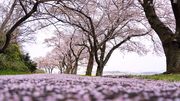 湖山池公園の桜です。 道に花びらが敷きつめられていてきれいでした。