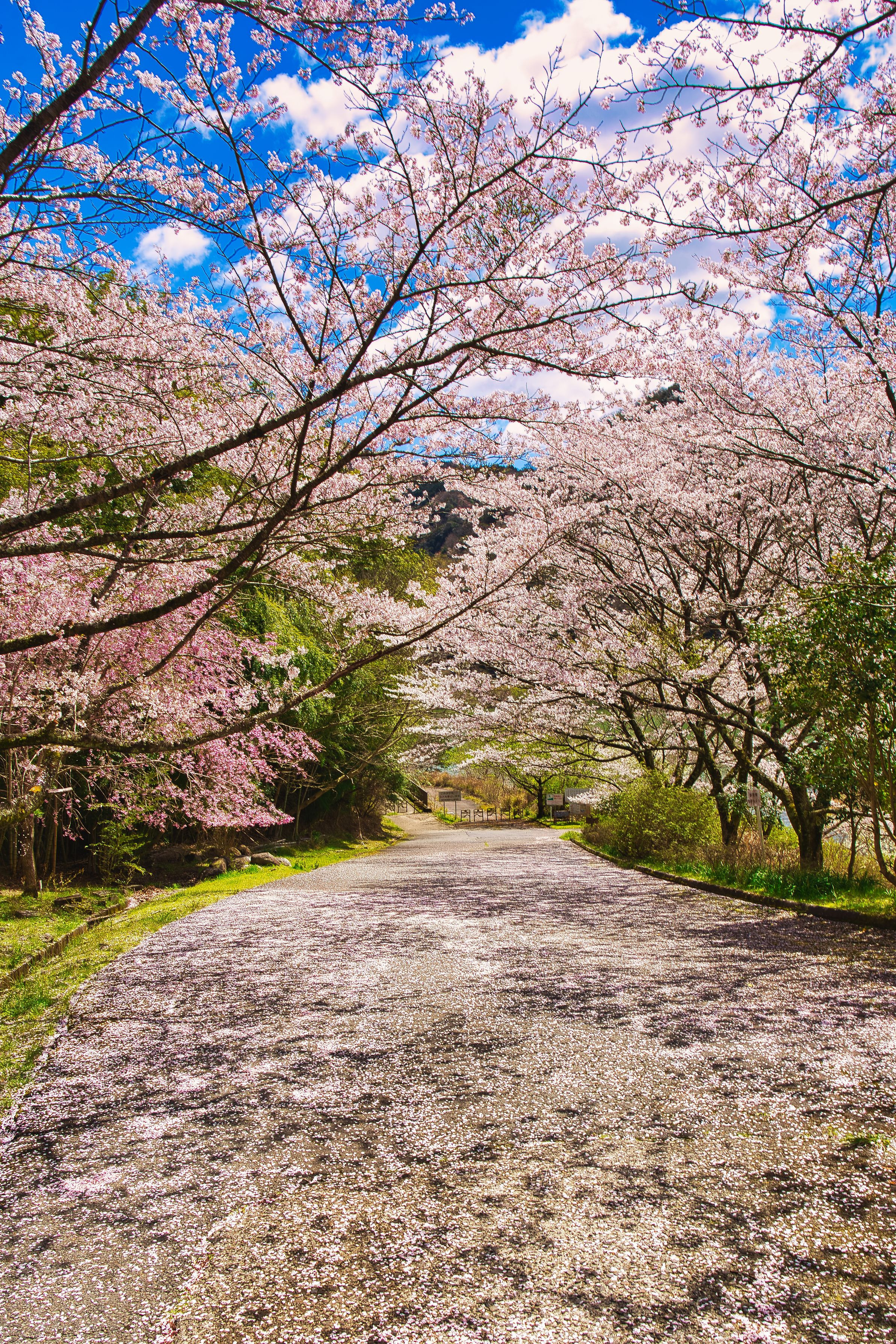咲いてる桜と、散った桜の絨毯で上下左右の桜回廊🌸🌸 伊東・奥野ダムのある松川湖付近の春ポテンシャルの高さが感じられる何気ない風景📷