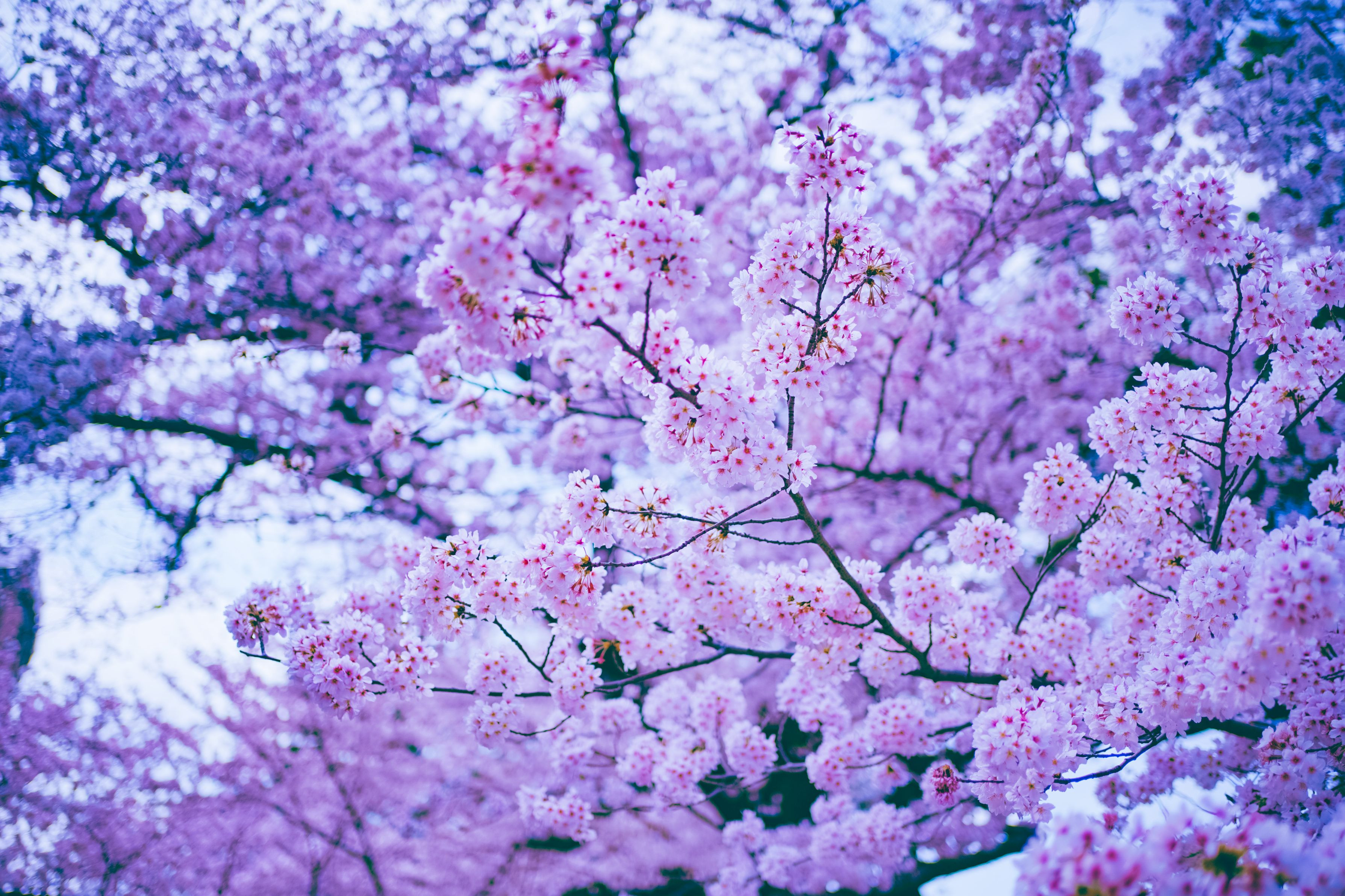 桜の下を歩く