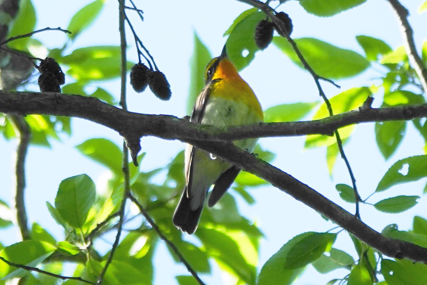 今年初撮りです。キビタキが空に向かって大声で囀っていました。