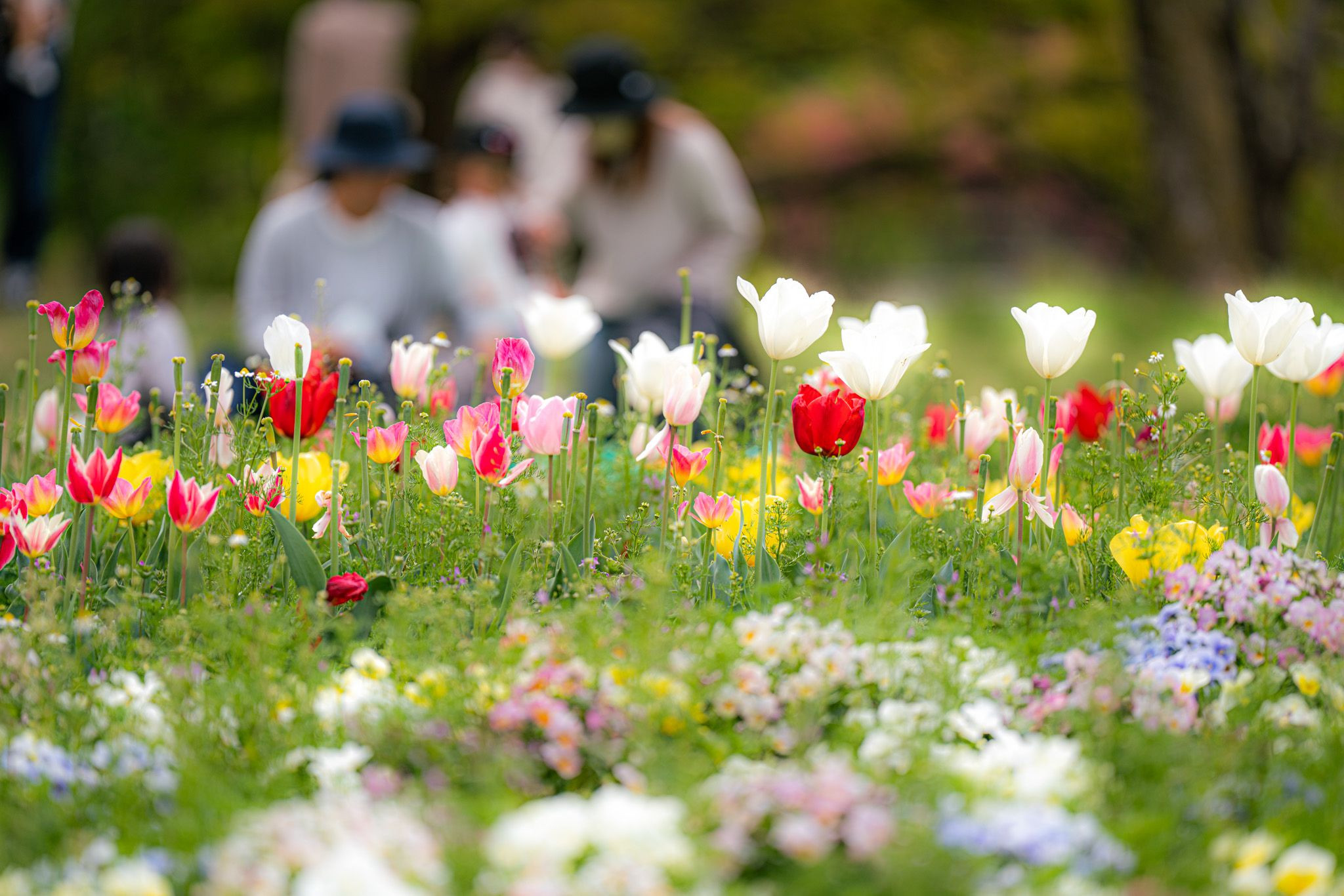 春の草花を撮影している向こうに、微笑ましい家族の姿が見えました。