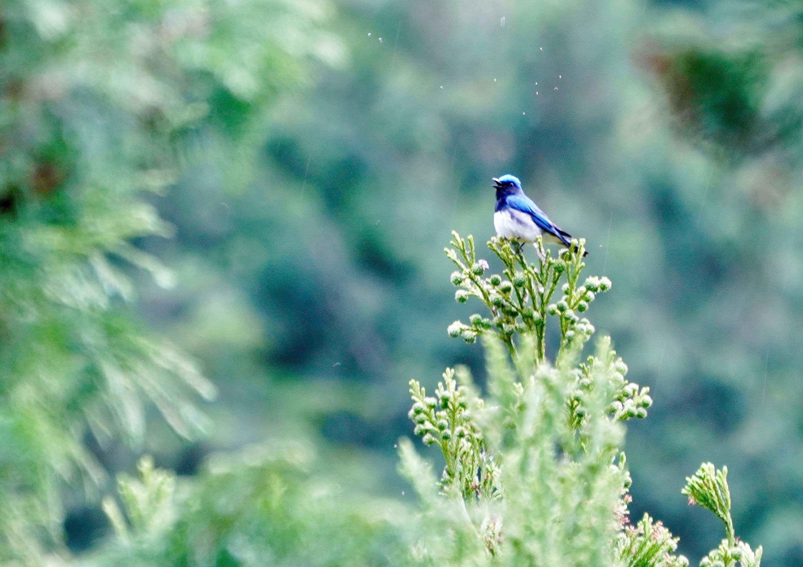 本命はまだでした。 囀りは近く、オオルリは遠くこんな写真になりました。 今季、初めての出会いです。
