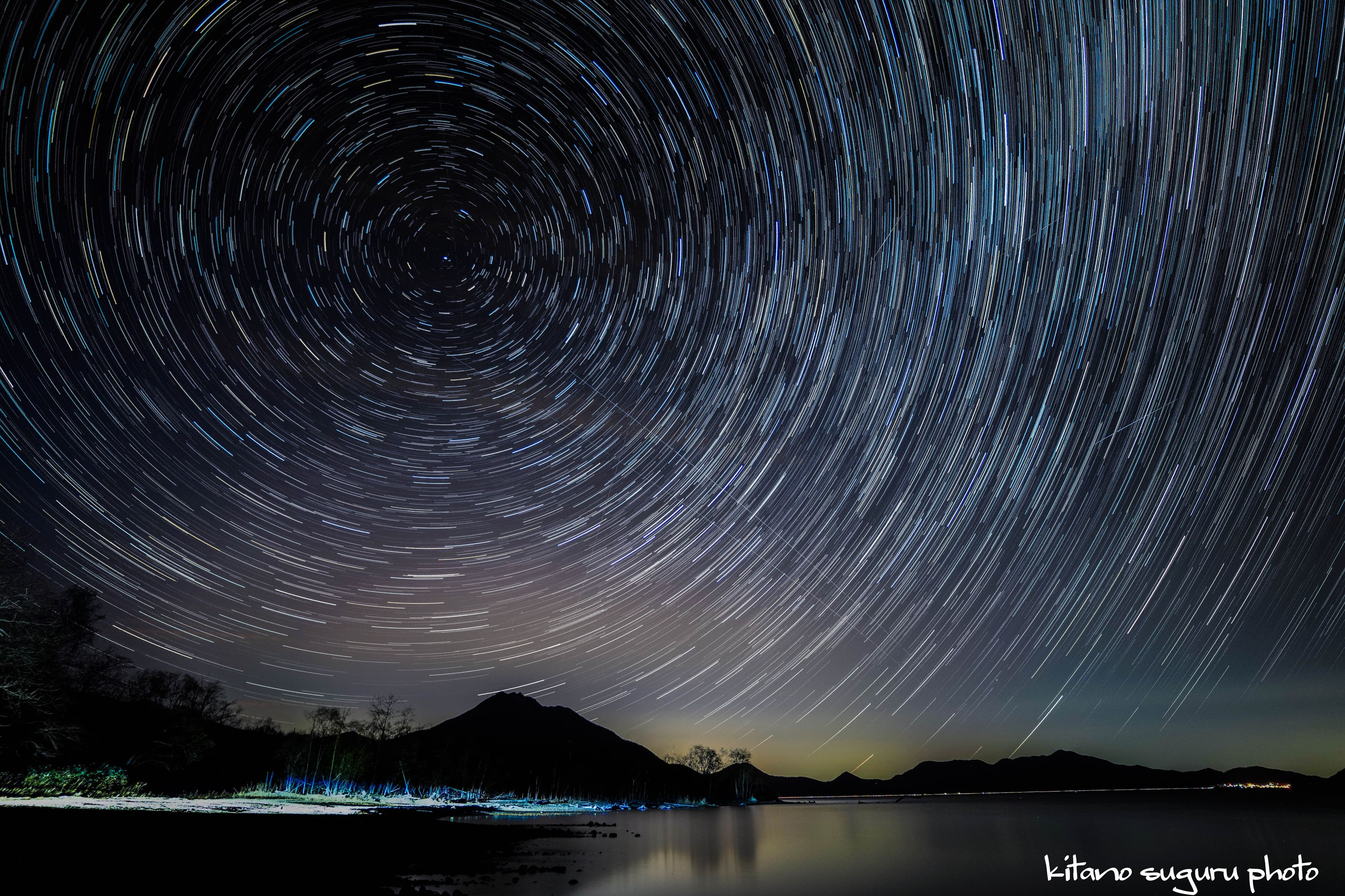 支笏湖美笛側星景