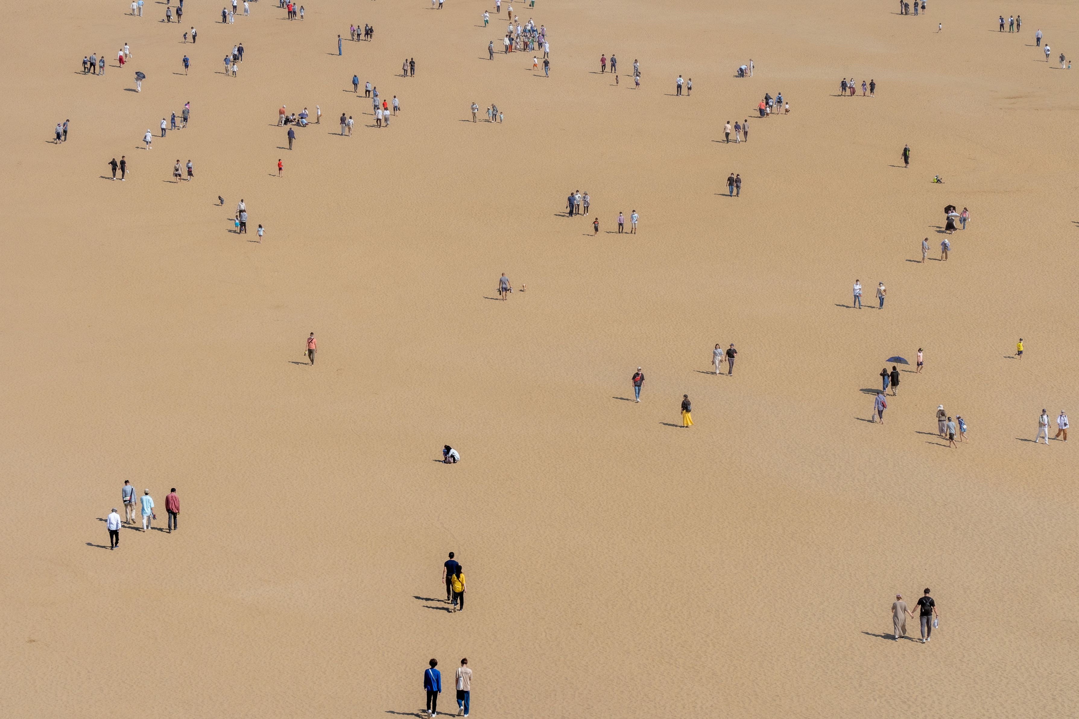 鳥取砂丘。人を小さく、敢えて丘や空を撮らない様にする事で不思議な写真にしました。