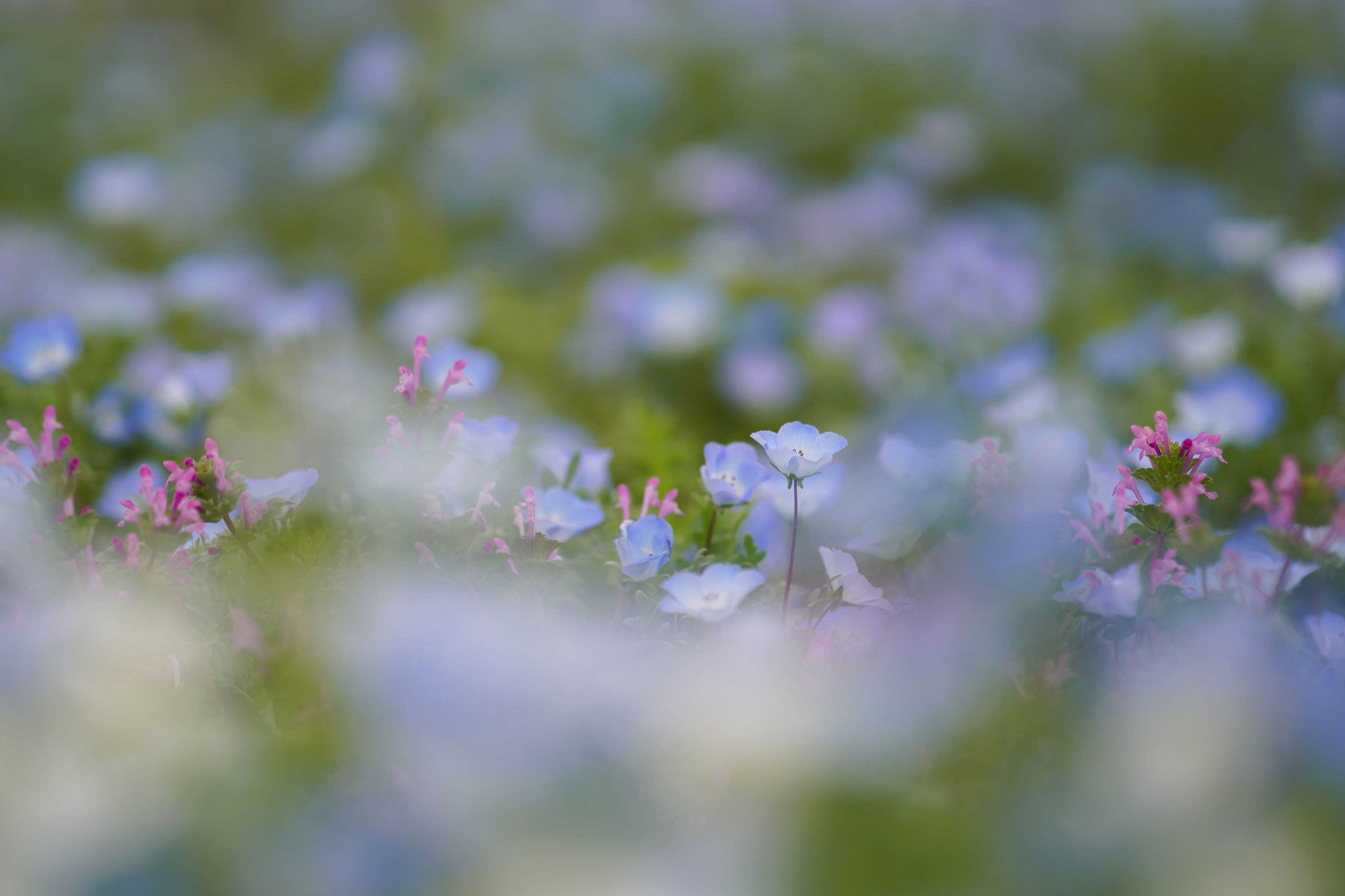 ネモフィラの水色の中にふんわり桃色が混ざってるなあと思ったら、ホトケノザなのでした。ピンクが混ざるだけで雰囲気が変わります(^^)
