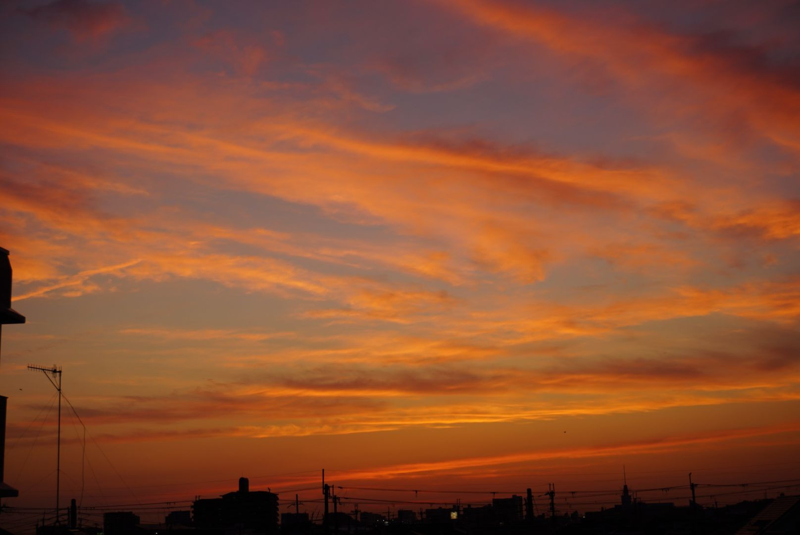 本日久しぶりの夕焼けです。 ありのままですが、空には、癒やされます。