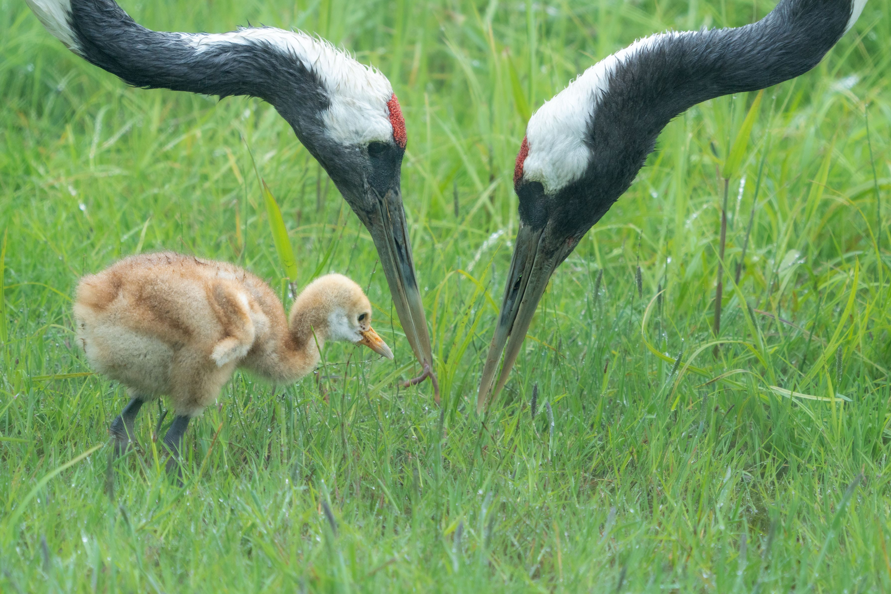 みみずを食べさせようとしています。 雛はまだ食べるのが上手ではなく、よく落としたりしますが すぐに親鳥が拾ってあげたりして。。微笑ましい光景でした☆