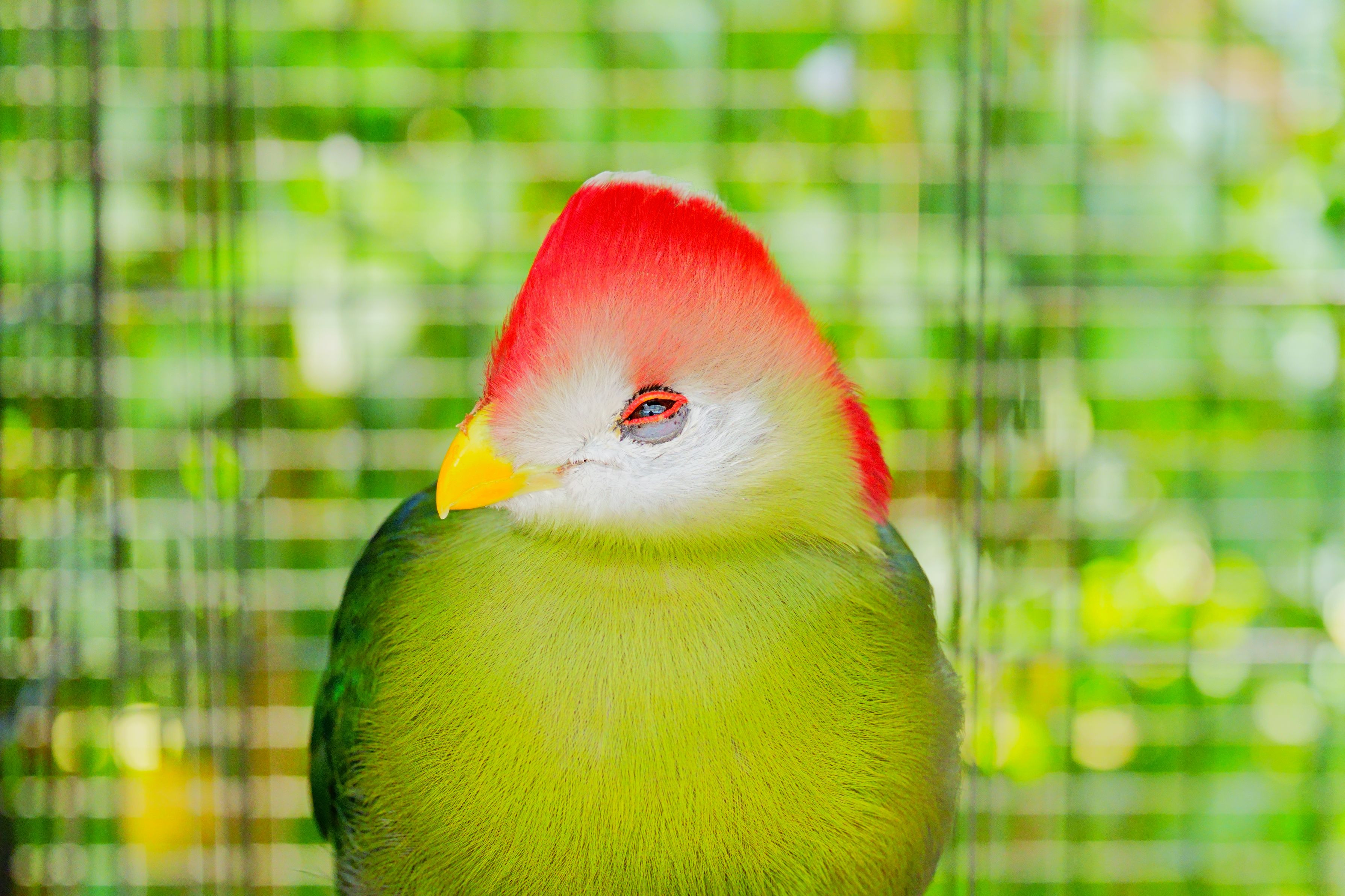 掛川花鳥園にて かごの中の暗がりの中で 一際鮮やかに輝いていました。