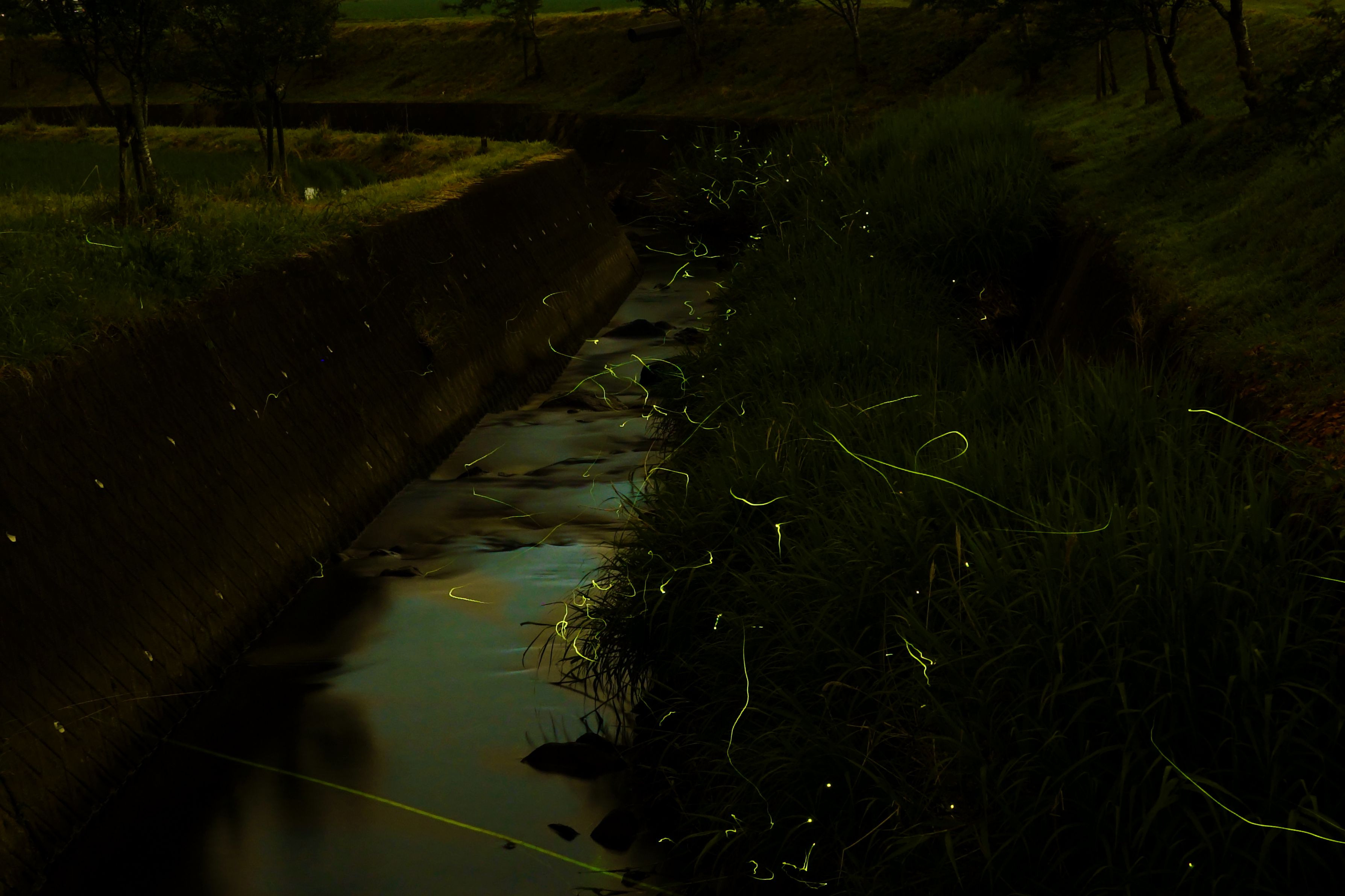 初めての、ホタル撮影でした。 田んぼの中を流れる小川のほとりで、2時間頑張りました。 この1枚だけ、なんとか、ものにできました~