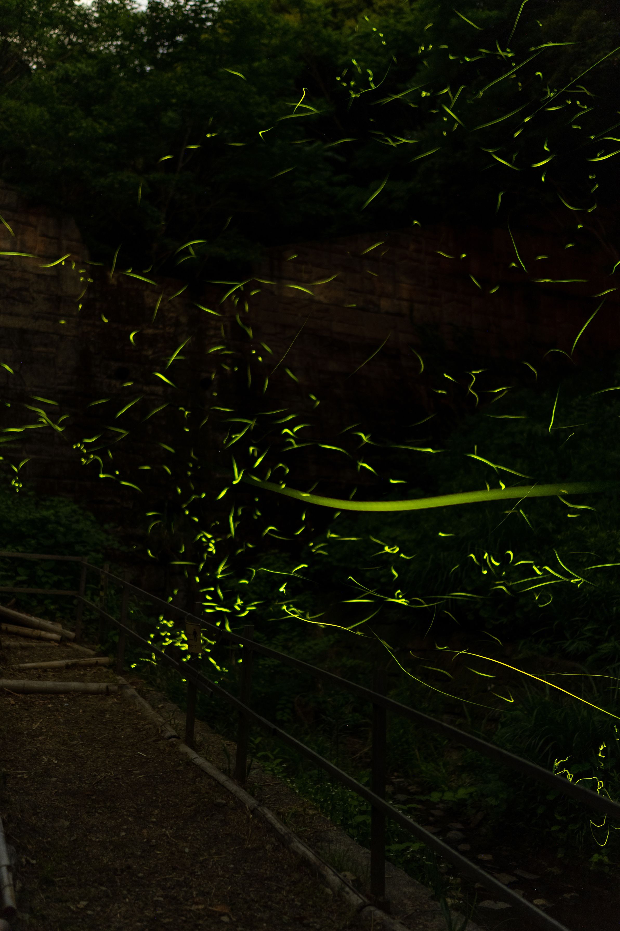 形原温泉のあじさい祭 「ほたるの宿」 せっかく来たので覗いて行くか…というノリで行ったらホタルが飛んでいる! 設定なんて予備知識はなしで、勘でなんとか・・・。 パソコンで比較明合成ソフトを使いました。