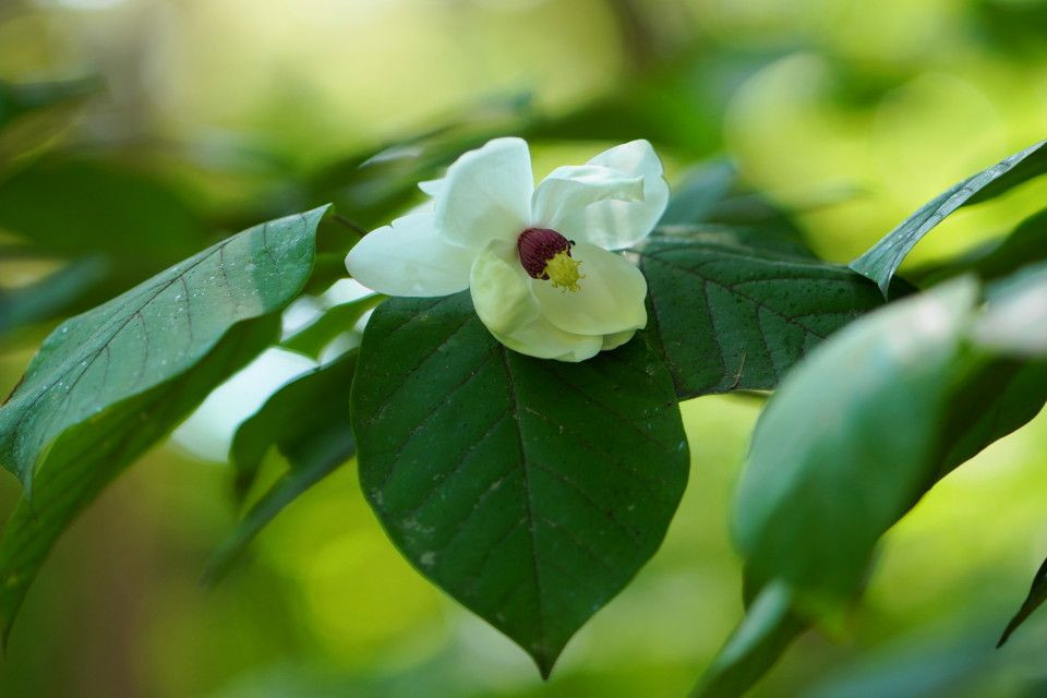 森の貴婦人といわれ、純白の花を咲かせるオオヤマレンゲを見つけました。