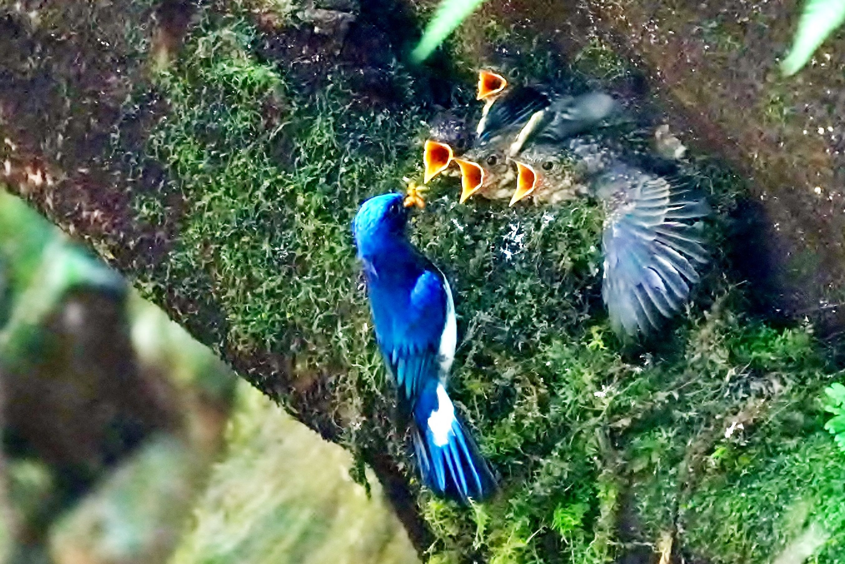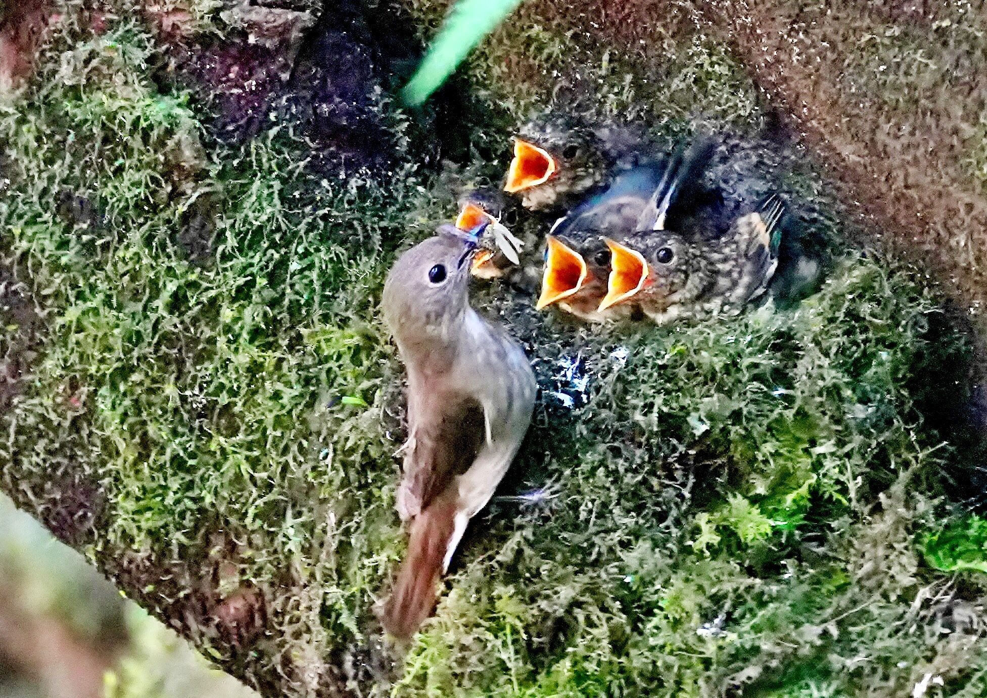巣立ち前の食欲旺盛の#オオルリ#の雛を撮影する事が出来ました。
