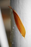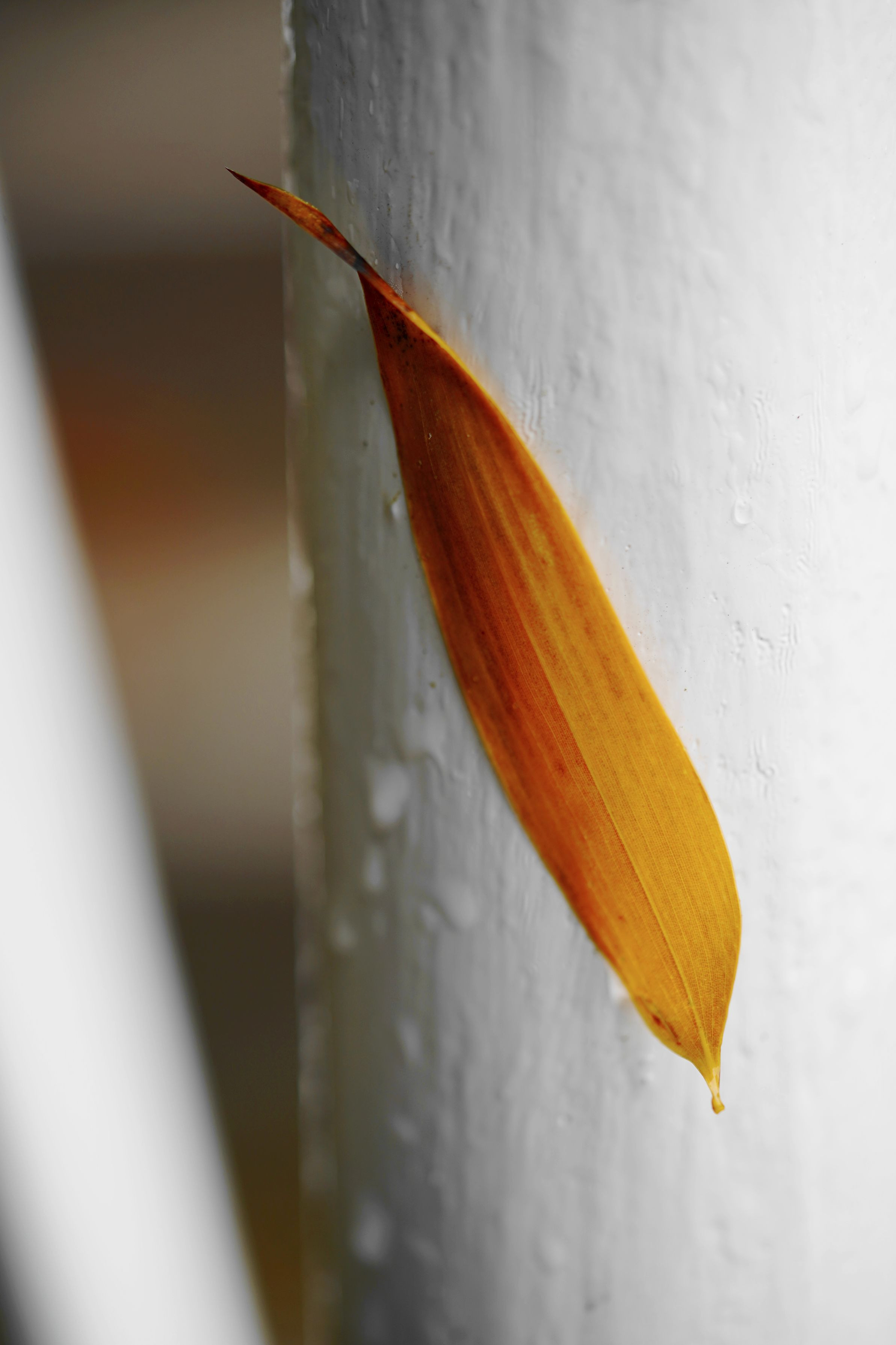 夜来の雨、昨年塗り替えられた階段手摺にピシャッと貼りついていた落葉2枚。 1枚目は何の葉でしょう?Googleレンズでは「ケヤキ」と出ますが違うと思います。2枚目は間違いなく「竹」。検索ではメチャクチャな名前が出ます。 当地、投稿時点でまだ梅雨入りしていません…。
