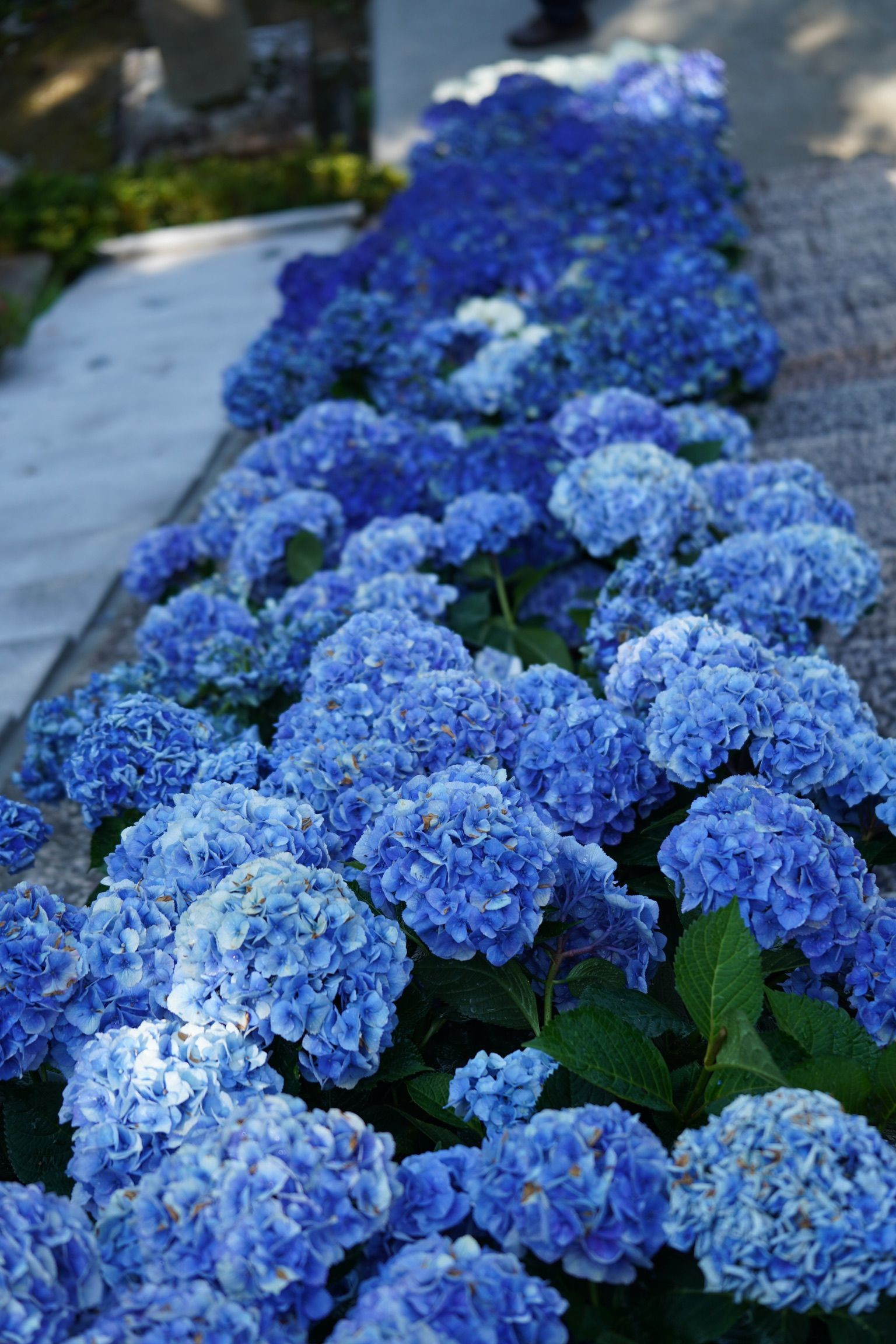 アジサイ寺で有名な三室戸寺に6/12に訪問し、階段を利用した昇鯉(しょうり)の図を人が居ない間に撮影しようと開門の40分前に並び目的は達成したと思ってました。 しかし10日までだったようで階段には図が解体された後のような青いアジサイが並んでました🫣 下調べ不足でした^^