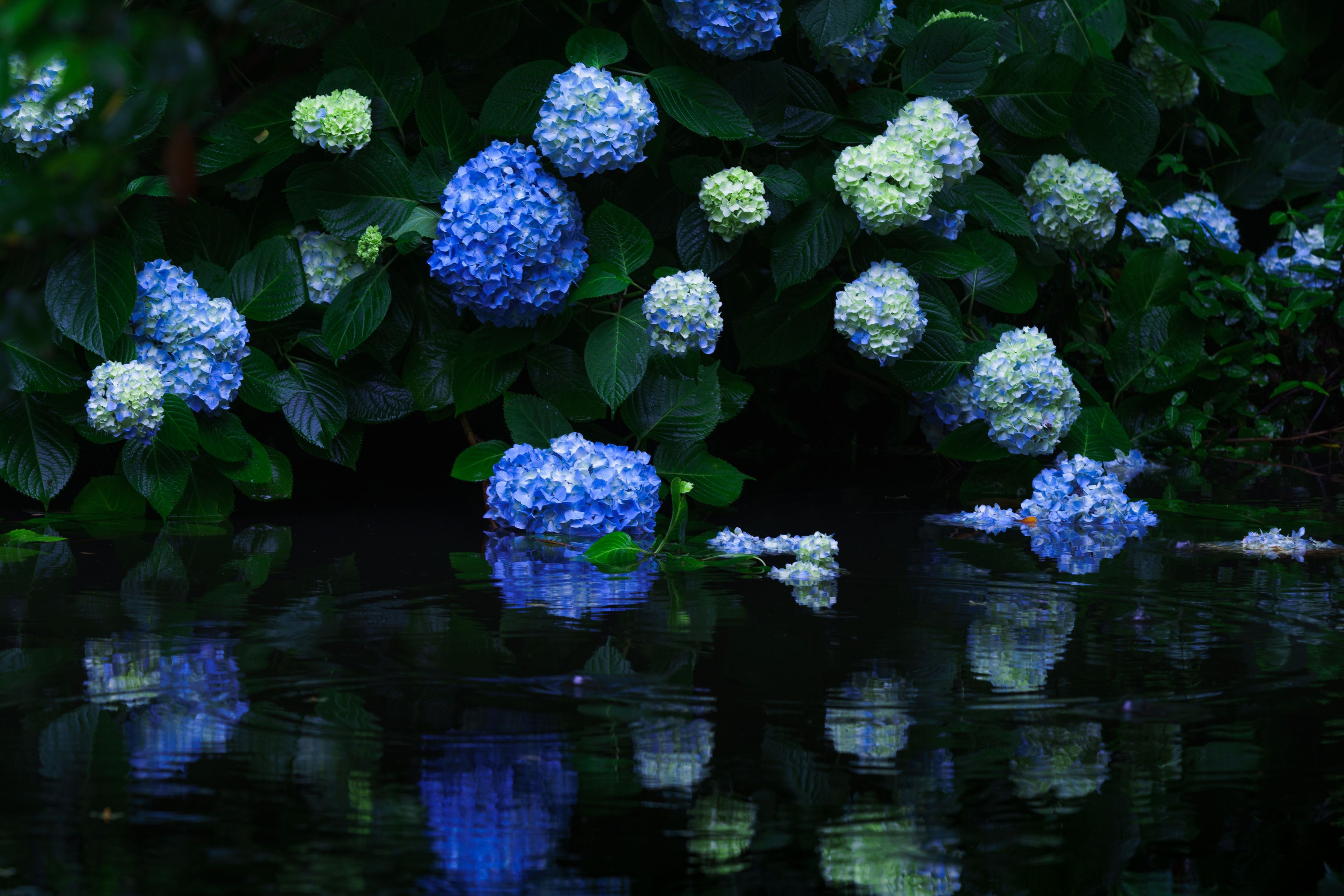 紫陽花寺としても有名な松江市の月照寺。 水辺の紫陽花が幻想的でした。