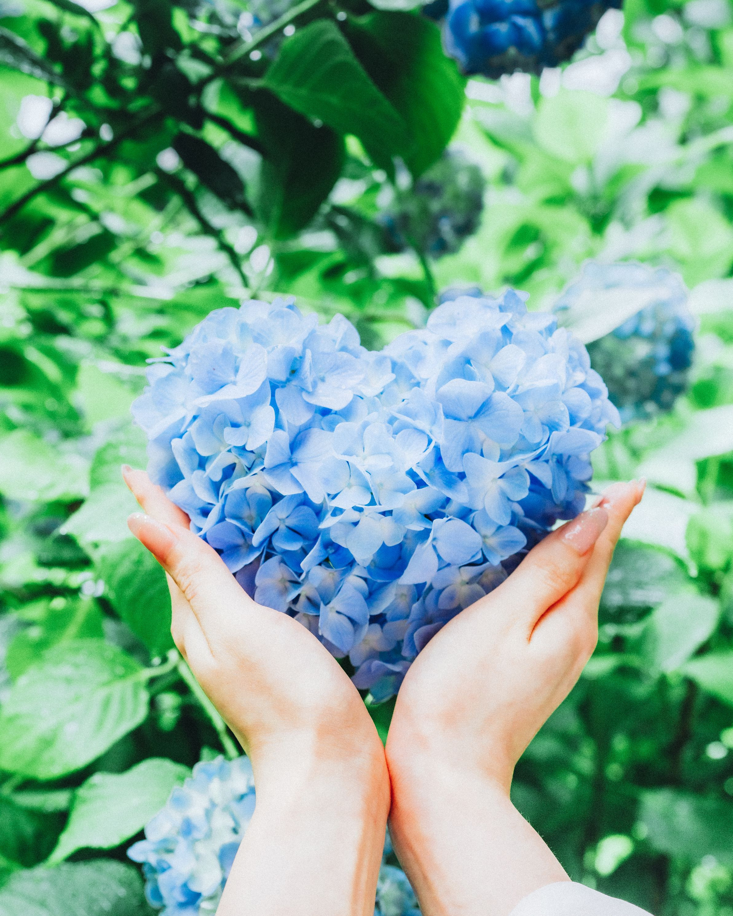 神奈川県の長谷寺でハート型の紫陽花を見つけました。 梅雨時期で少し後ろめたい季節ですが、優しくハートを包み込んでいるので、温かい雰囲気で編集しました。