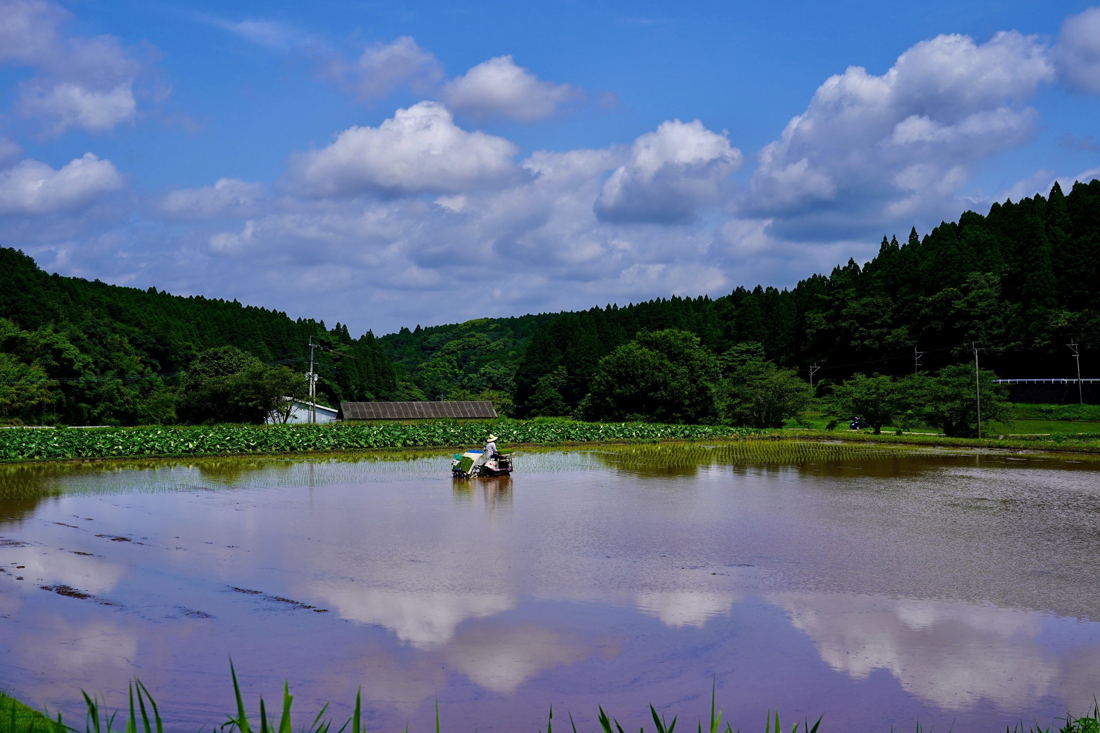 通りがかりに綺麗な光景が目に止まり車止めて撮りました。阿蘇・俵山麓の水田です〜