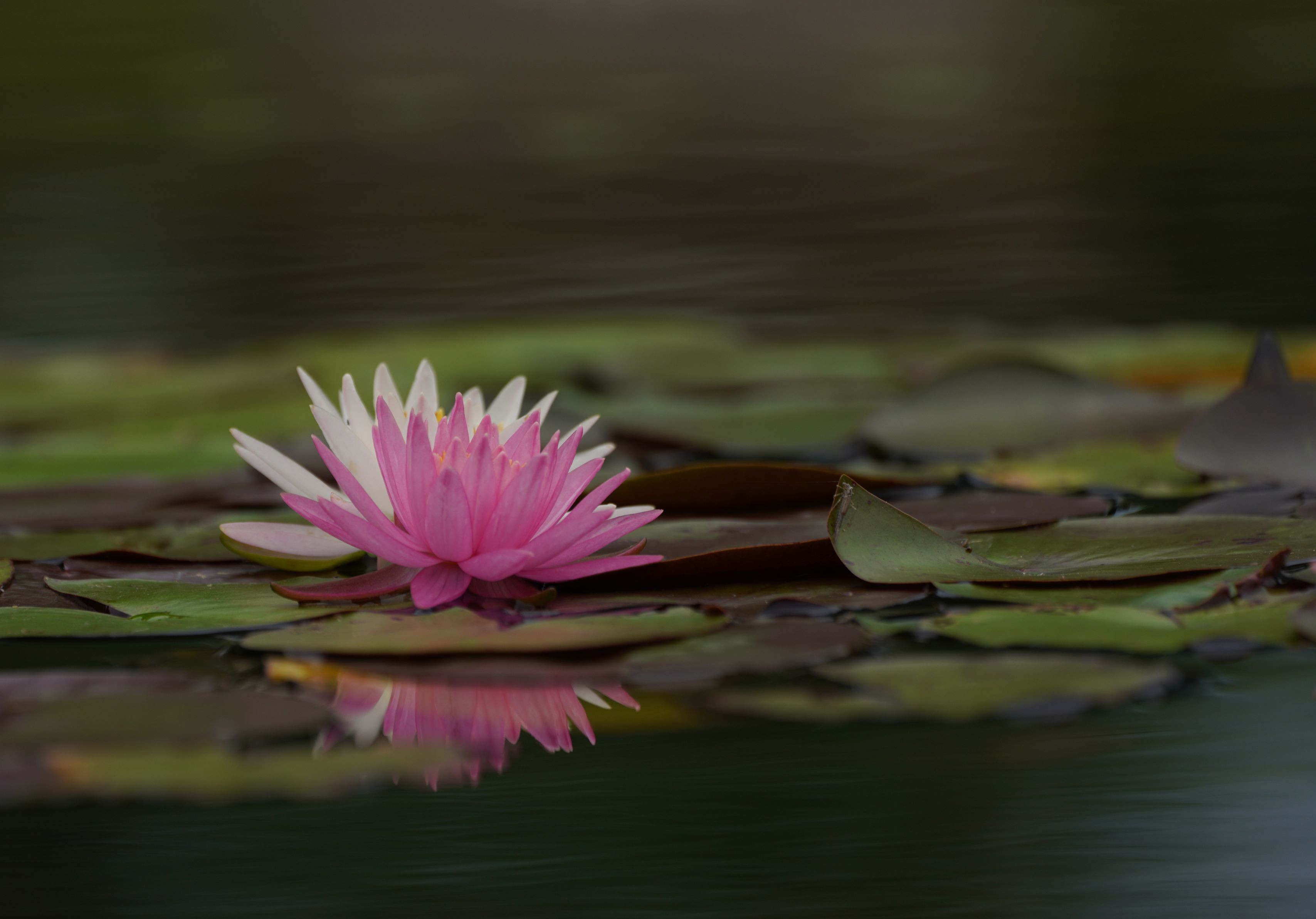 初夏の癒し睡蓮を撮りました。近くの羽化を待つヤゴがいるのを発見。