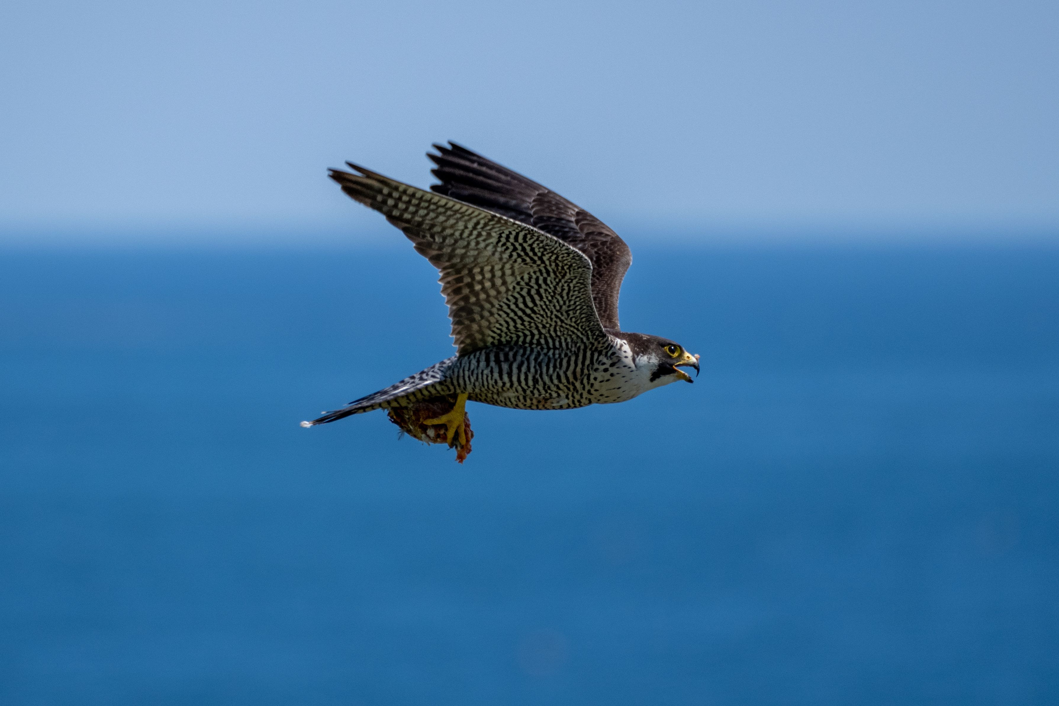 ハヤブサが肉を運んでいました。 #ハヤブサ#