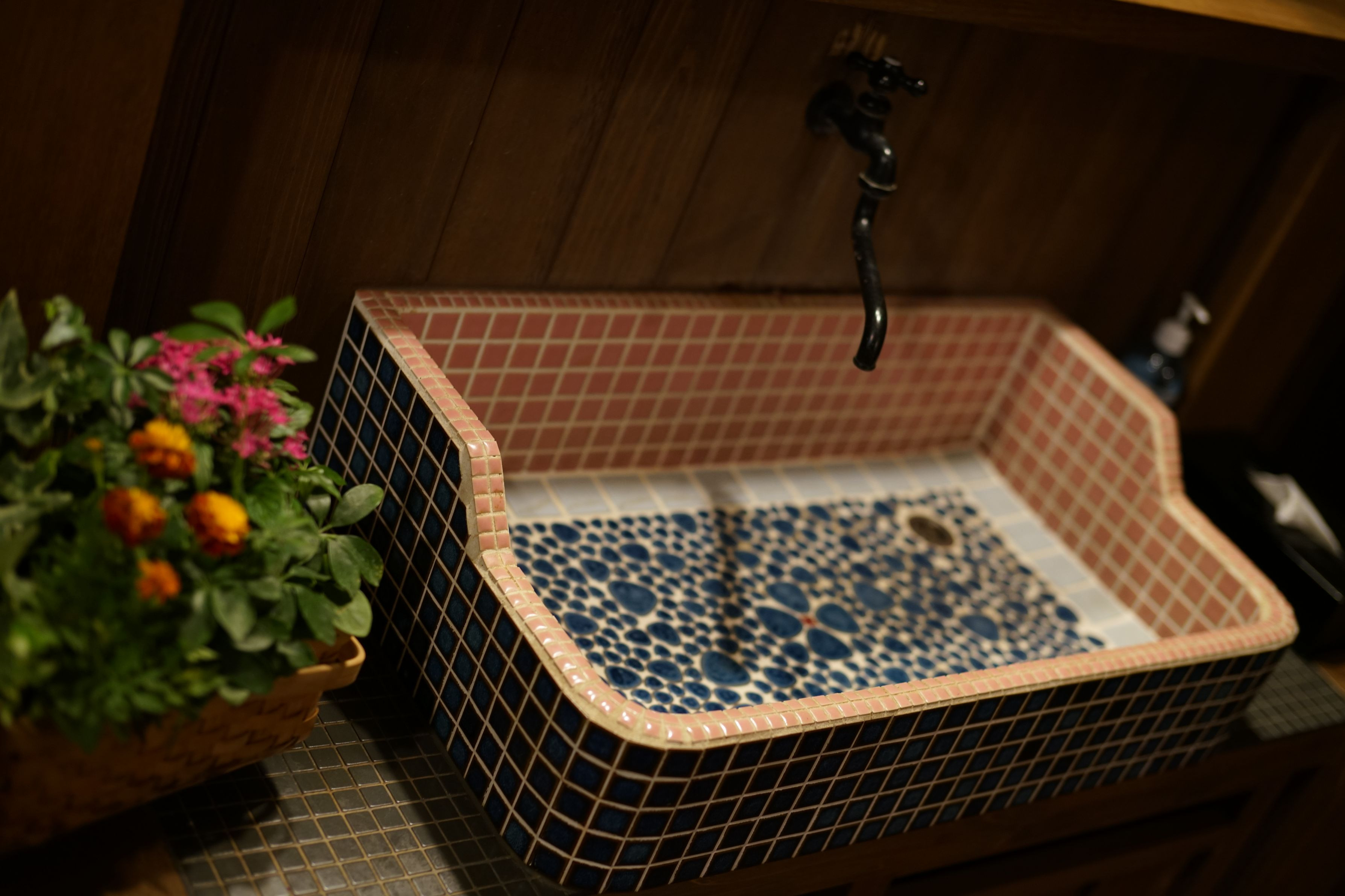 レトロ宿の洗面台 いい味出てます タイルがいいですね~