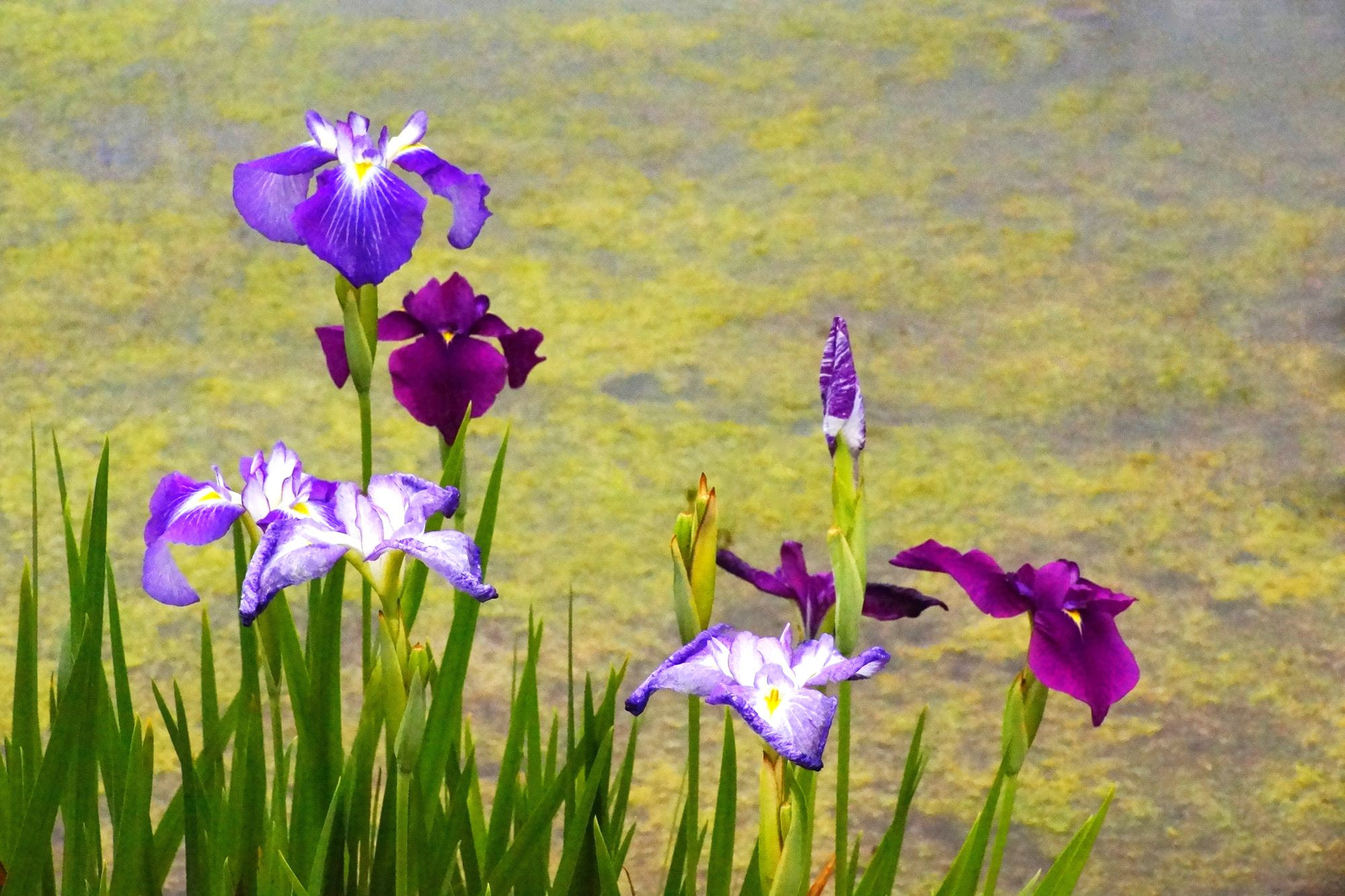 東村山市北山公園の花菖蒲です!水田の藻が大分繁殖してきていましたが、それをバックに利用してみました!