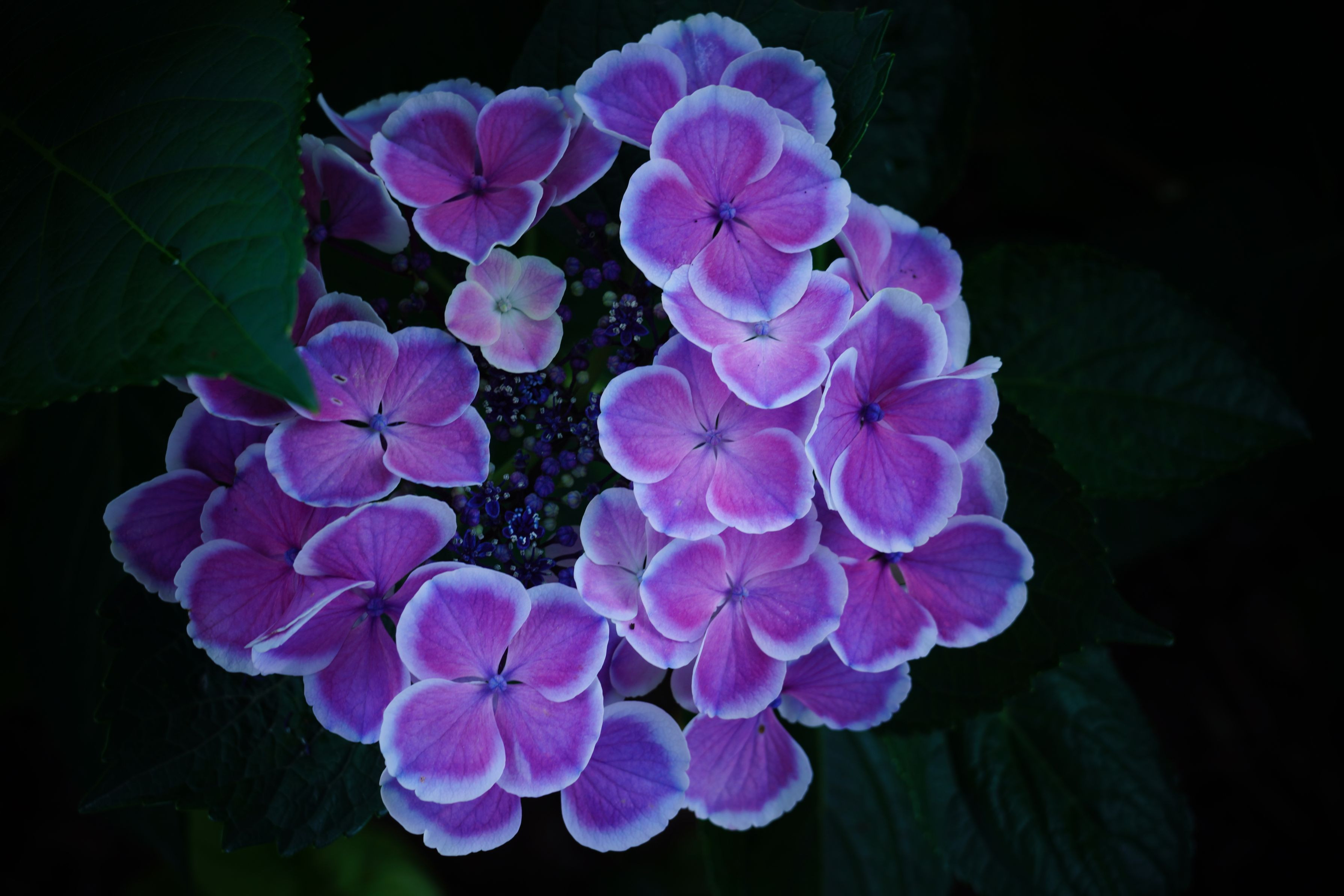 縁が白くなっている紫陽花が、日陰にしっとりと咲いていたので、その静かに咲く様子を収めました。トイカメラのエフェクトをかけて、しっかり周りを沈めてみました。