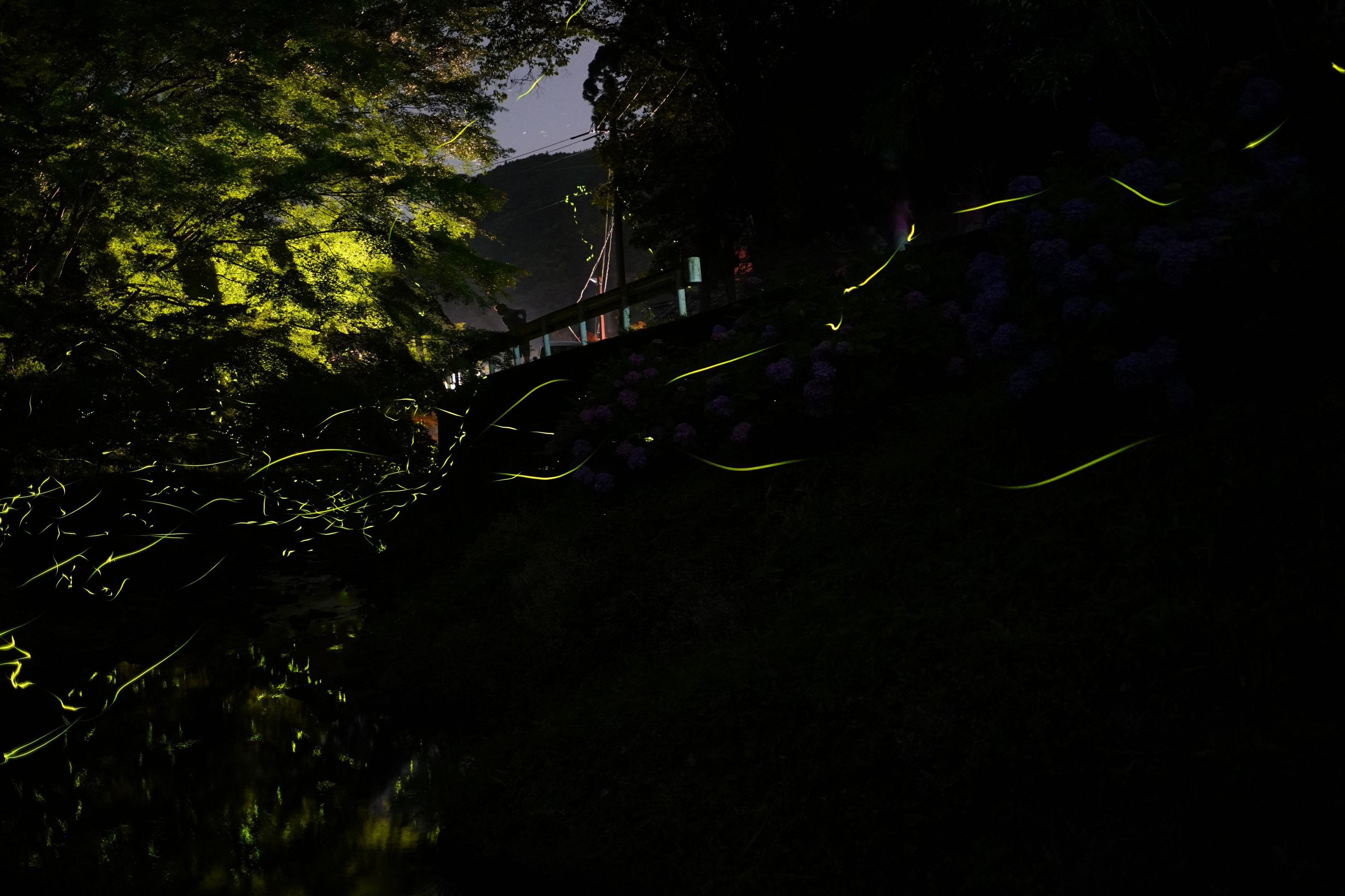 若干ではありますが、蛍の光が水面に反射しました。