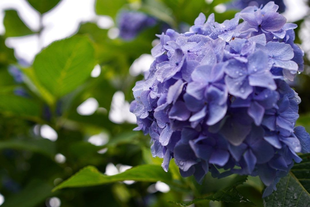 雨上がりの紫陽花です。 水が滴りまた味わい深くなっています。
