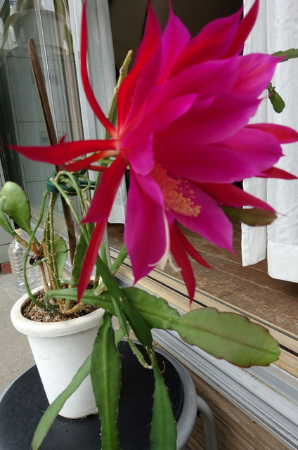 クジャクサボテンが一輪咲きました